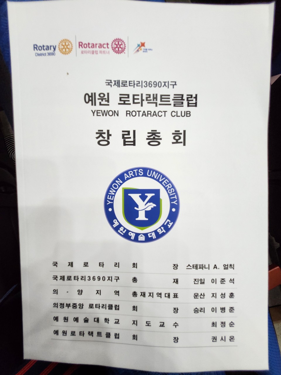 예원 로타랙트 정식 명칭으로 창립식을 진행했습니다.