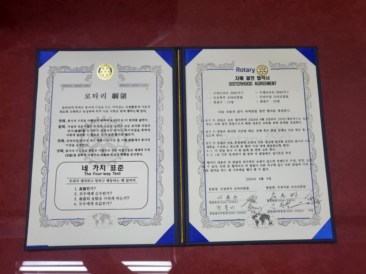 -내용: 인천북부RC(회장 이종선)과 인천서곶RC(회장 송은경)은 효율적인 로타리 활동을 하고 서로 협력하며 힘이 되어주고자 협약식을 체결하였습니다.