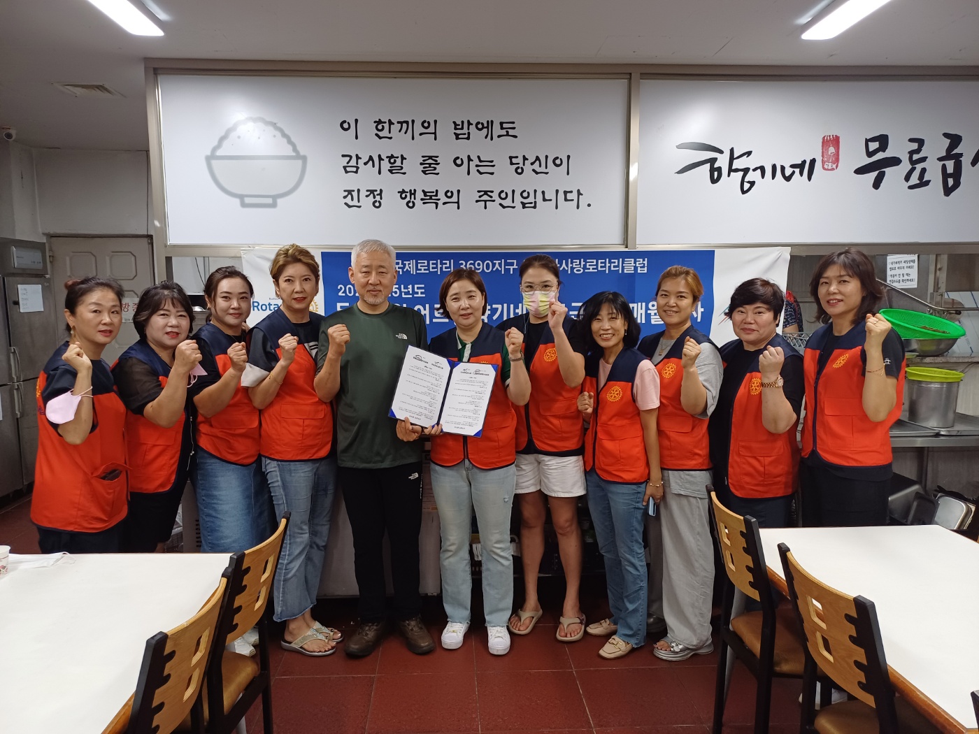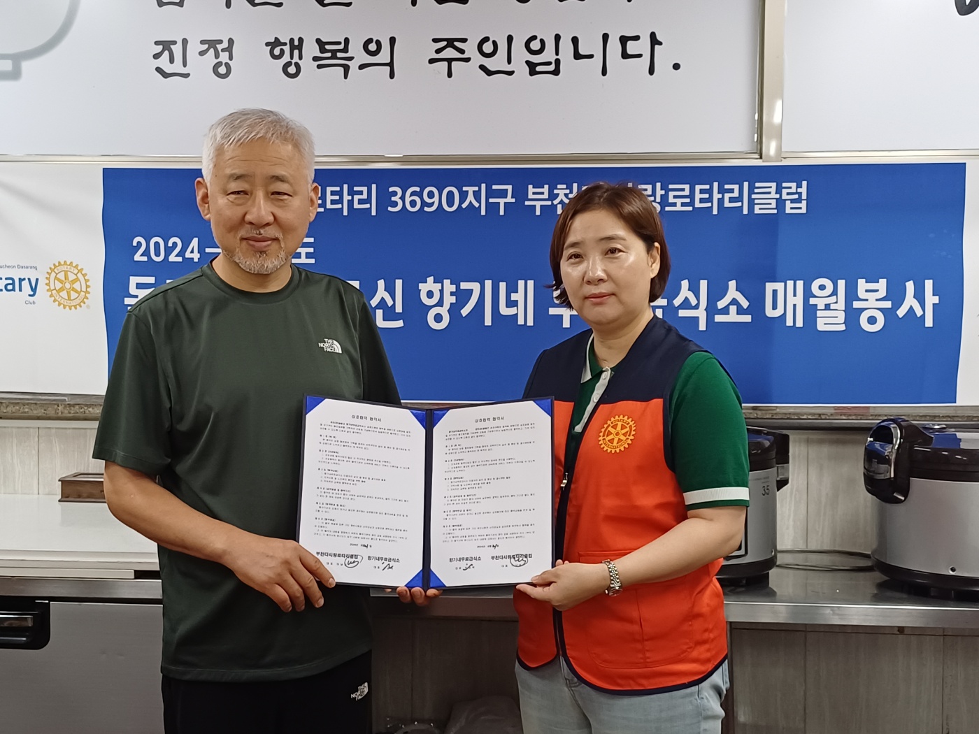 부천다사랑RC 회장(몽 이남용)은 2024. 08. 22일(목) 향기네 무료 급식소 임성택 대표님과 부천다사랑RC MOU체결하였습니다.