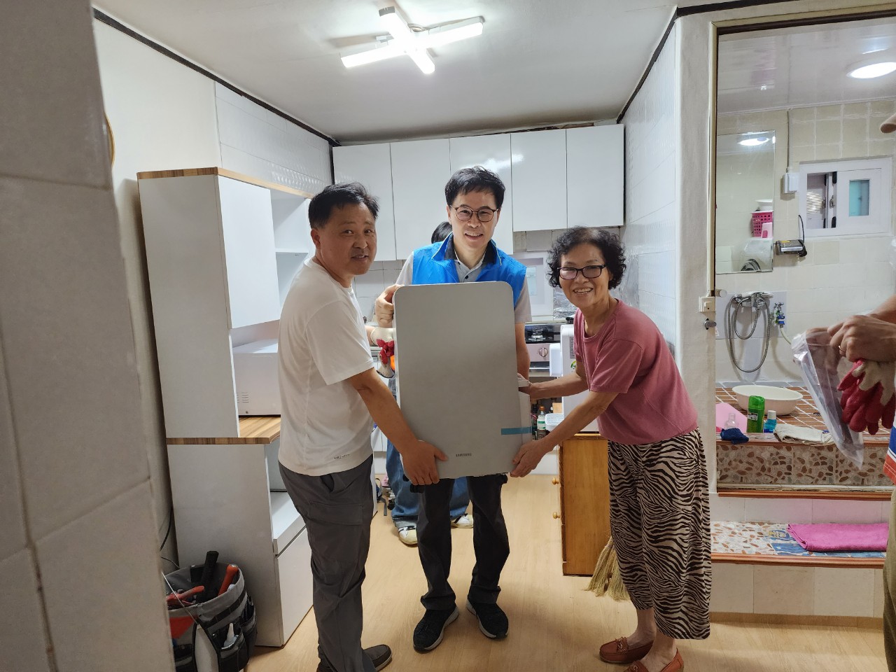 ■ 폭염에따른 수혜대상자의 고충을 덜어드리기 위해 그리고 주거공간이 협소하여 마지막 날 작업공정의 혼잡을 우려하여 일부공정은 아래와같이 선 시공하였읍니다