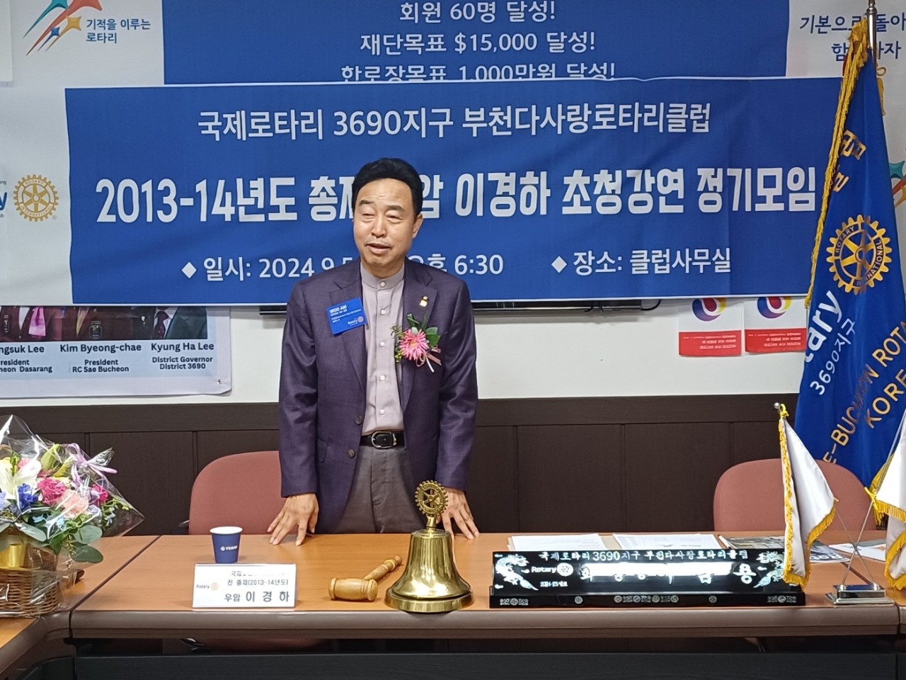 부천다사랑RC 회장(몽 이남용)은 2024.9.5일(목) 우암 이경하 총재님을 모시고 연사초청 정기모임을 진행하였습니다.