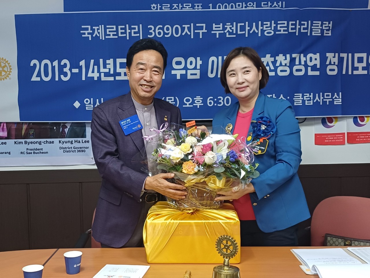 용무가 바쁘신중에도 늘 다사랑에 사랑으로 보듬어주시며 길라잡이 역할해 주시는 새부천 우암 이경하 전 총재님을 모시고 로타리인으로써 갖추어야할 자세와 마음가짐등을 다시한번 되새길 수있는 좋은 말씀에 감사드립니다.