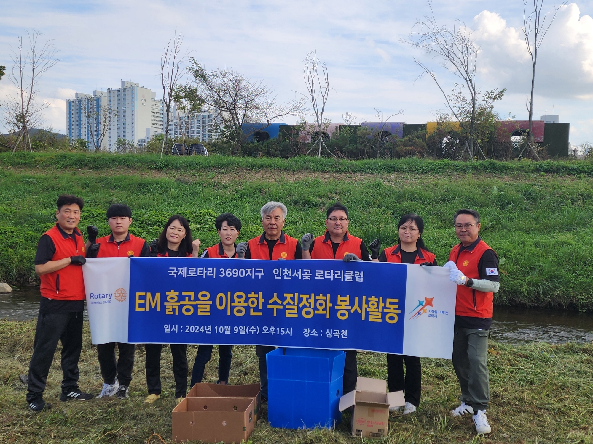 하천을 깨끗하게 정화하기 위해 인천서곶 로타리회원들은 EM 흙공을 만들고 던지며 보람과 부듯함을 느끼며 행복한 하루 였다고 한 목소리로 외쳤다.