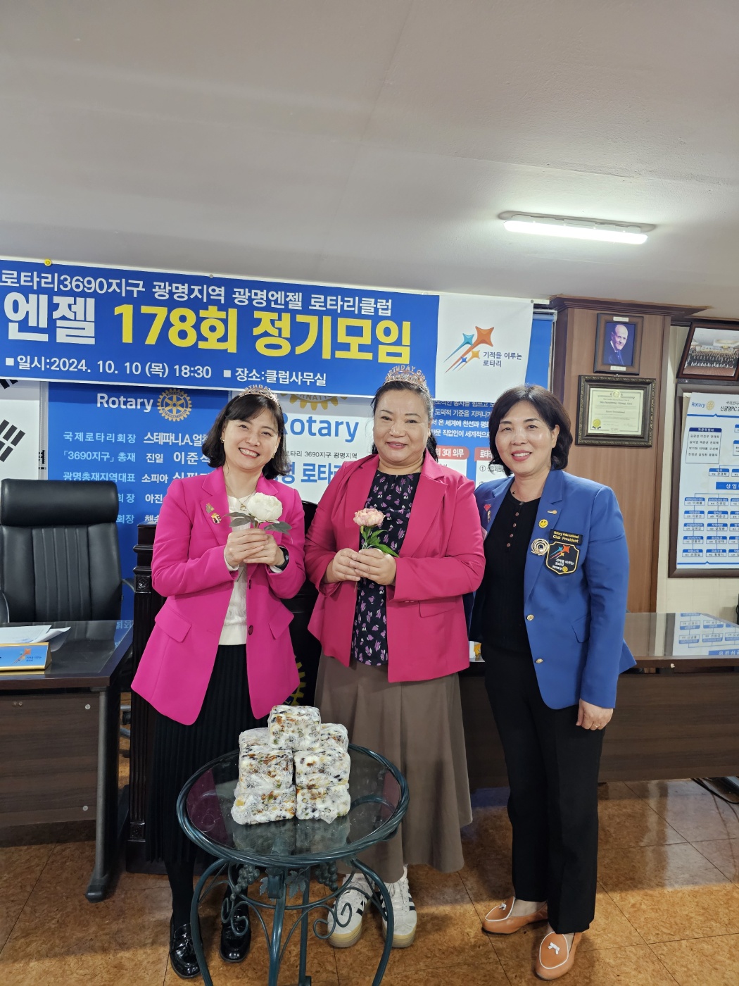 광명엔젤로타리클럽 (회장 이선옥)은 10월정기모임을 총무 허윤정의 진행으로 지난 추석명절의 봉사내용과 회원들의 안부를 묻는 시간을 가지며 지난 여성의날행사때 장려상을 수상한축하도 함께 나누었다.
