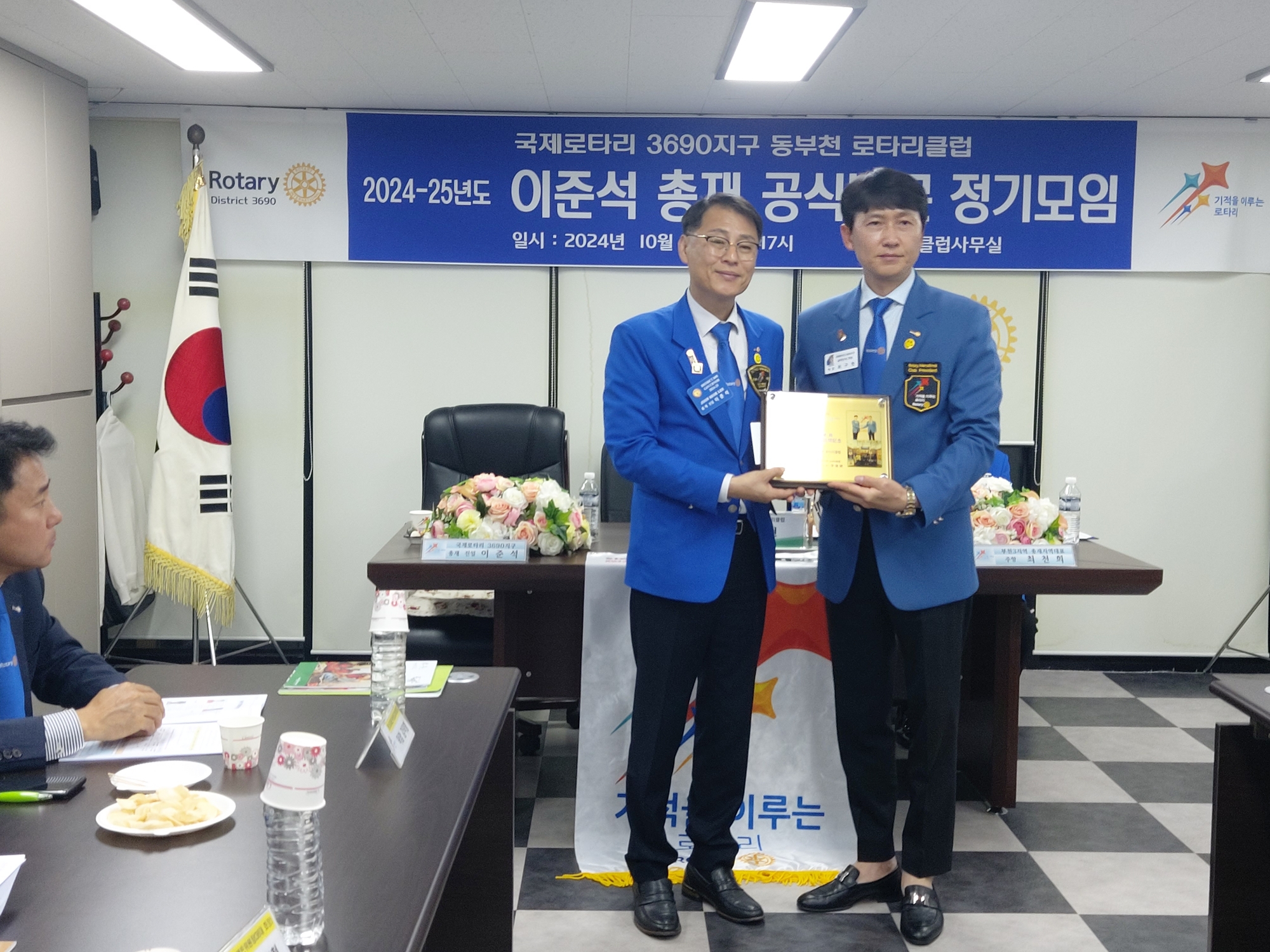 -내용: 동부천 로타리클럽(회장 백암 최구현)은 진일 이준석 총재님의 클럽공식방문을 맞이하여 회장, 총무 5대분과 위원장들과 클럽협의회를 하고 총재님과의 정기모임을 통해 회원님들과 클럽의 활성화 방안과 현안 문제에 대해 의견을 나누며 총재님의 조언을 듣는 귀한 시간을 가졌다