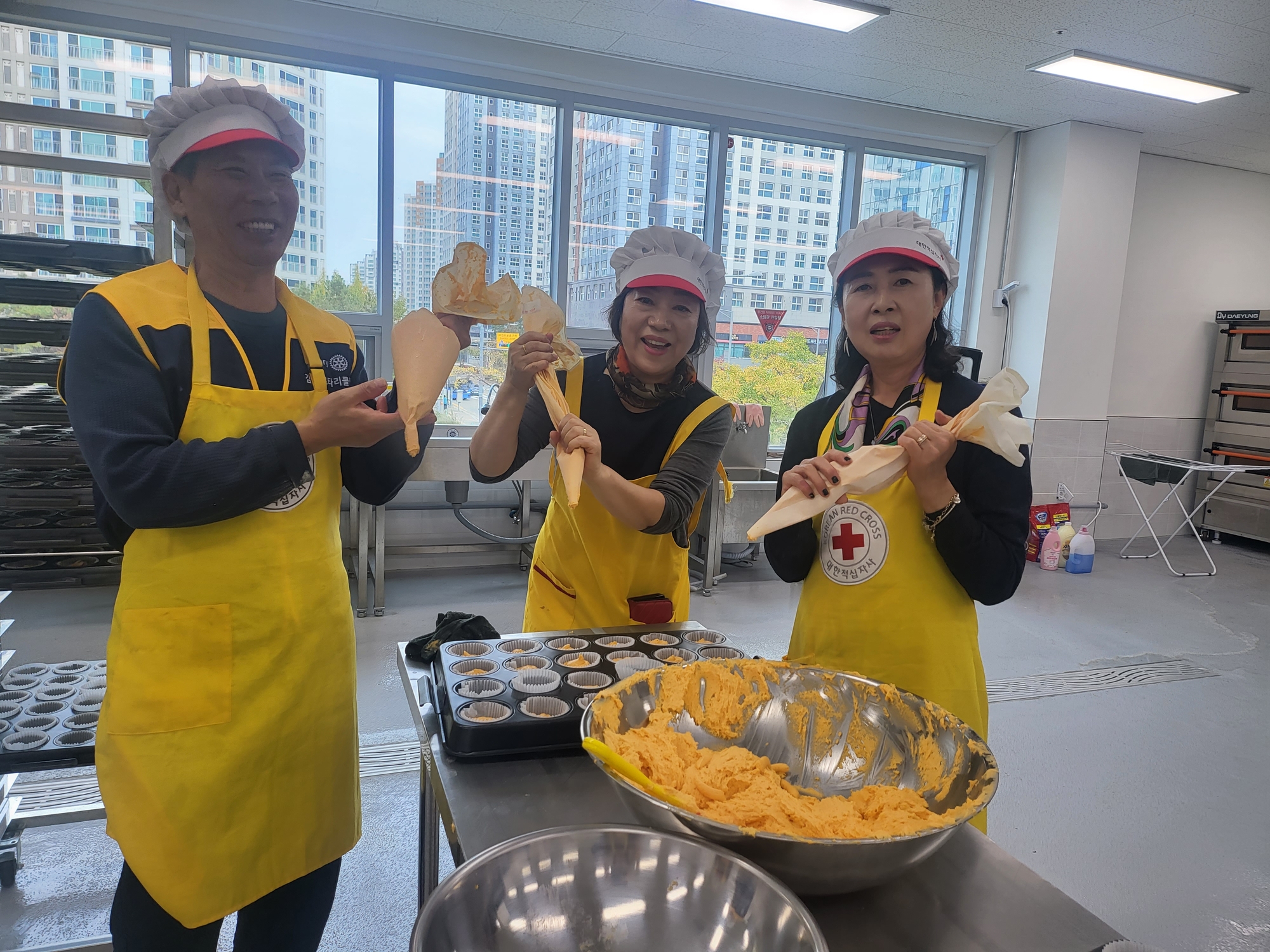 대한적십자사 봉사관에서 빵을 만들어 김포아이사랑썬타.경기도장애인복지회에 전달해 드렸습니다