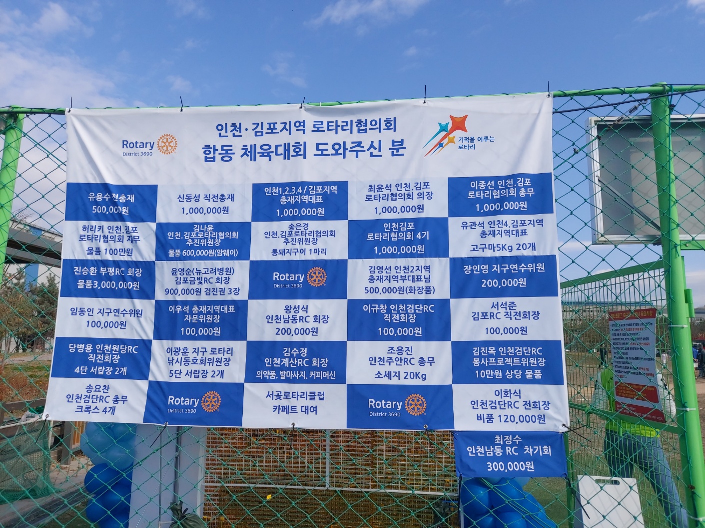 -내용: 인천북부로타리클럽(회장 상천 이종선)은 인천, 김포지역 합동체육대회 주관클럽으로 행사를 진행하였습니다, 오랜만에 개최되는 체육대회 행사는 각 지역별로 나뉘어서 각종 경기를 치르고 게임을 하면서 친목과 화합을 다지는 시간을 가졌습니다.