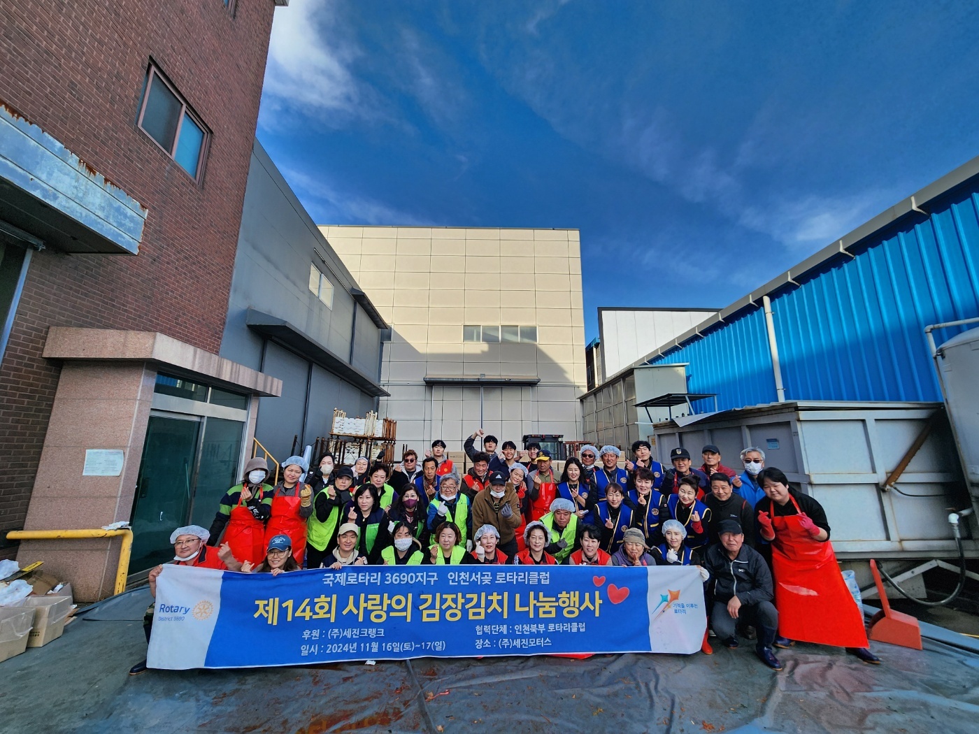 -내용: 인천북부로타리클럽(회장 상천 이종선)은 자매클럽인 인천서곶 로타리클럽의 사랑의 김장나눔봉사(배추 1,000포기)에 참여하였습니다. 양 클럽 회원 모두 힘든 작업에도 김치를 받고 행복해 하실 분들을 생각하며 즐거운 마음으로 봉사에 임하고 보람된 하루를 보냈습니다.