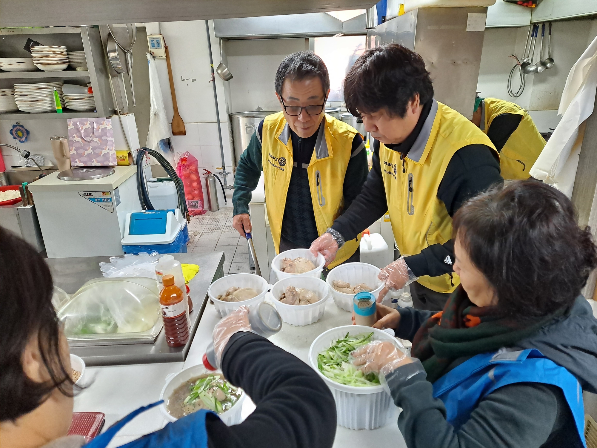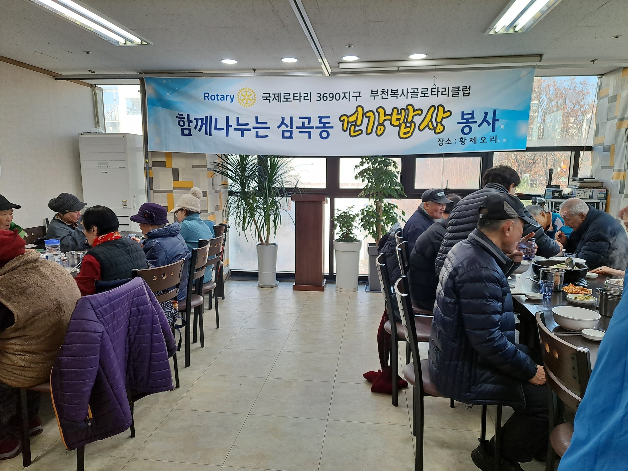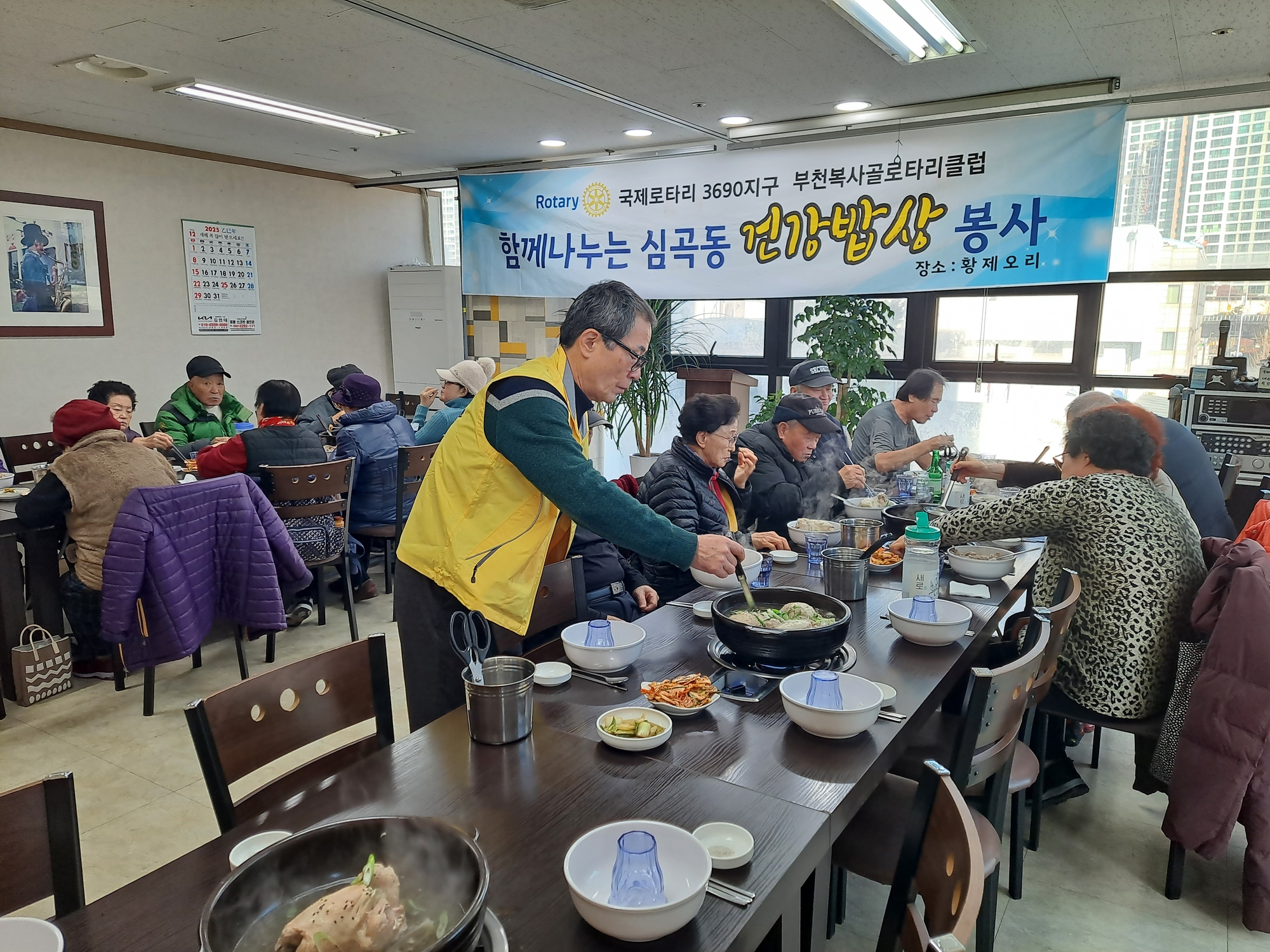본클럽은 매월3째주 수요일 평관 최동경 회장 사업장인 황제오리에서 한방 삼계탕 60명분 준비하여 독거어르신 및 취약계층어르신 께 심곡1동 25명께 복지협의회 배달봉사와 심곡3동