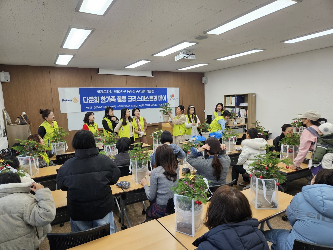 내 용: 지구보조금 사업으로 동두천시 가족센터 추천 다문화가족 대상(40명/1.2부)으로 크리스마스트리 만들기 체험 후 트리선물.