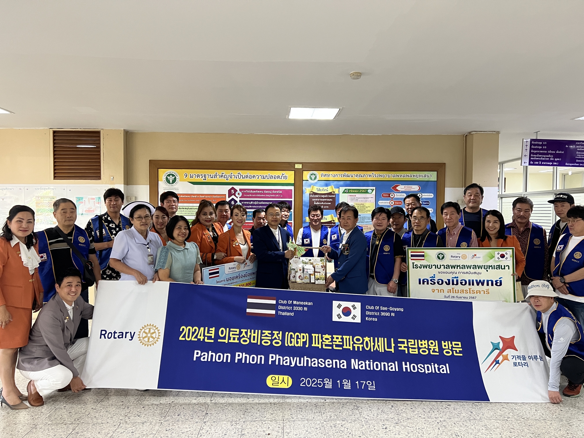 2025.1.16~20 태국 마네칸 로타리클럽 우정클럽과의 GGP 사업승인 사업지를 돌아보고, 지난 GGP사업때 진행됐던 병원지원 사업의 성과를 다시한번 점검하고, 암환우에대한 봉사활동을 진행하였으며, 태국마네칸 로타리클럽 이취임식을 가지고 왓습니다.