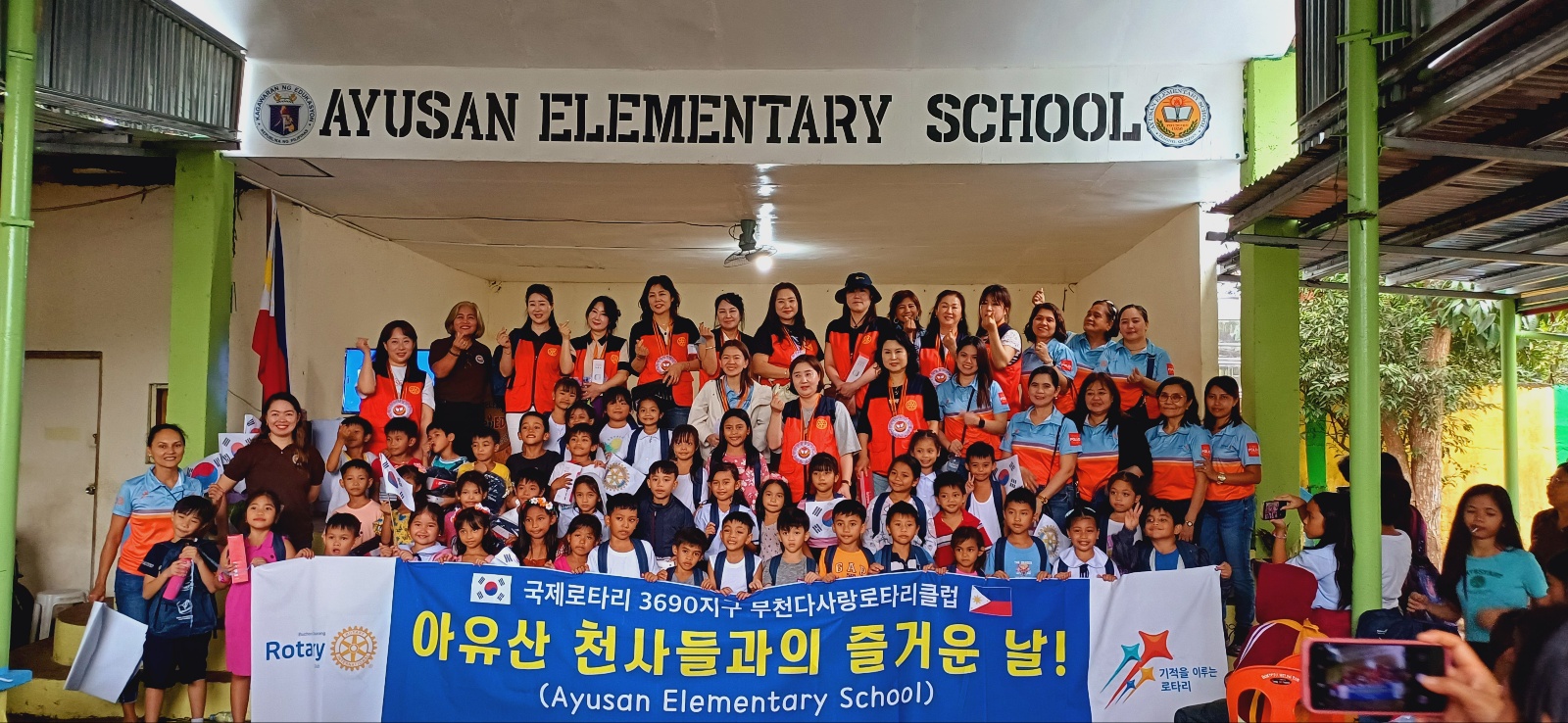 아유산 초등학교는 한국 봉사자 처음으로 부천다사랑RC 방문하였으며, 257명학생에게 (가방,텀블러,물) 제공하였으며, 졸리비 파티를 하였습니다.