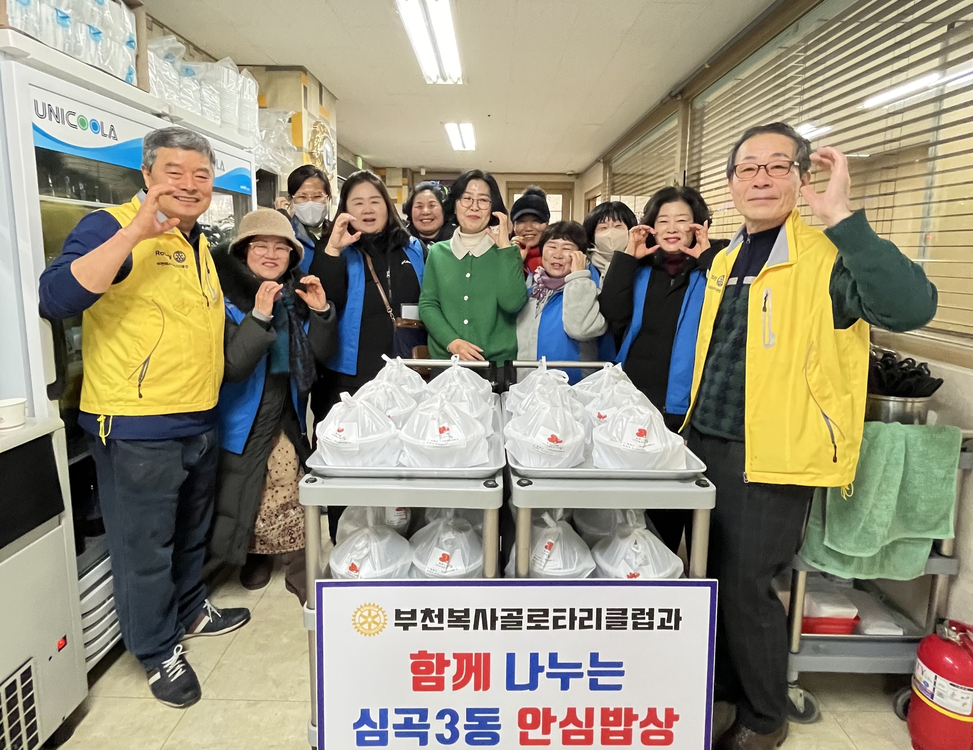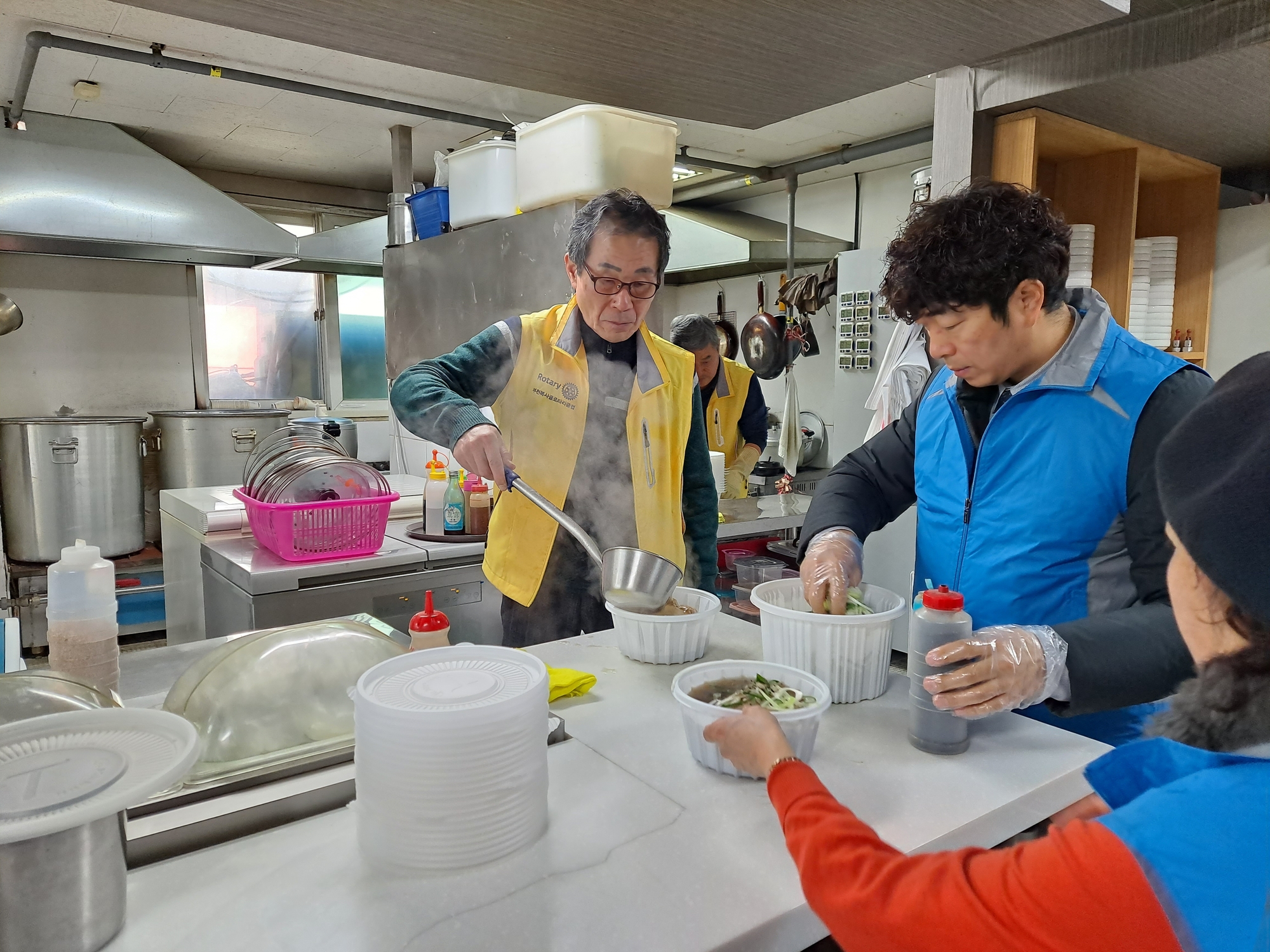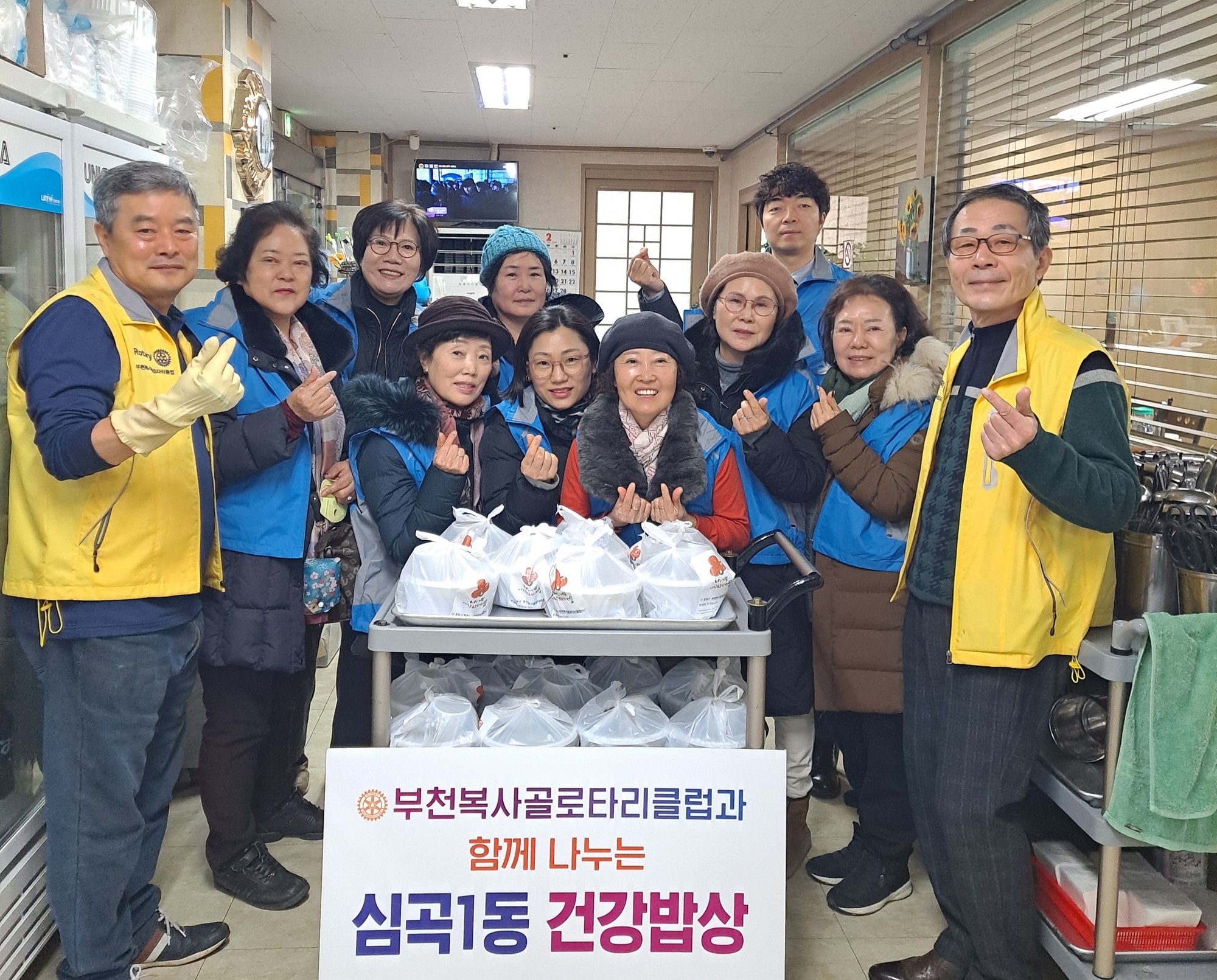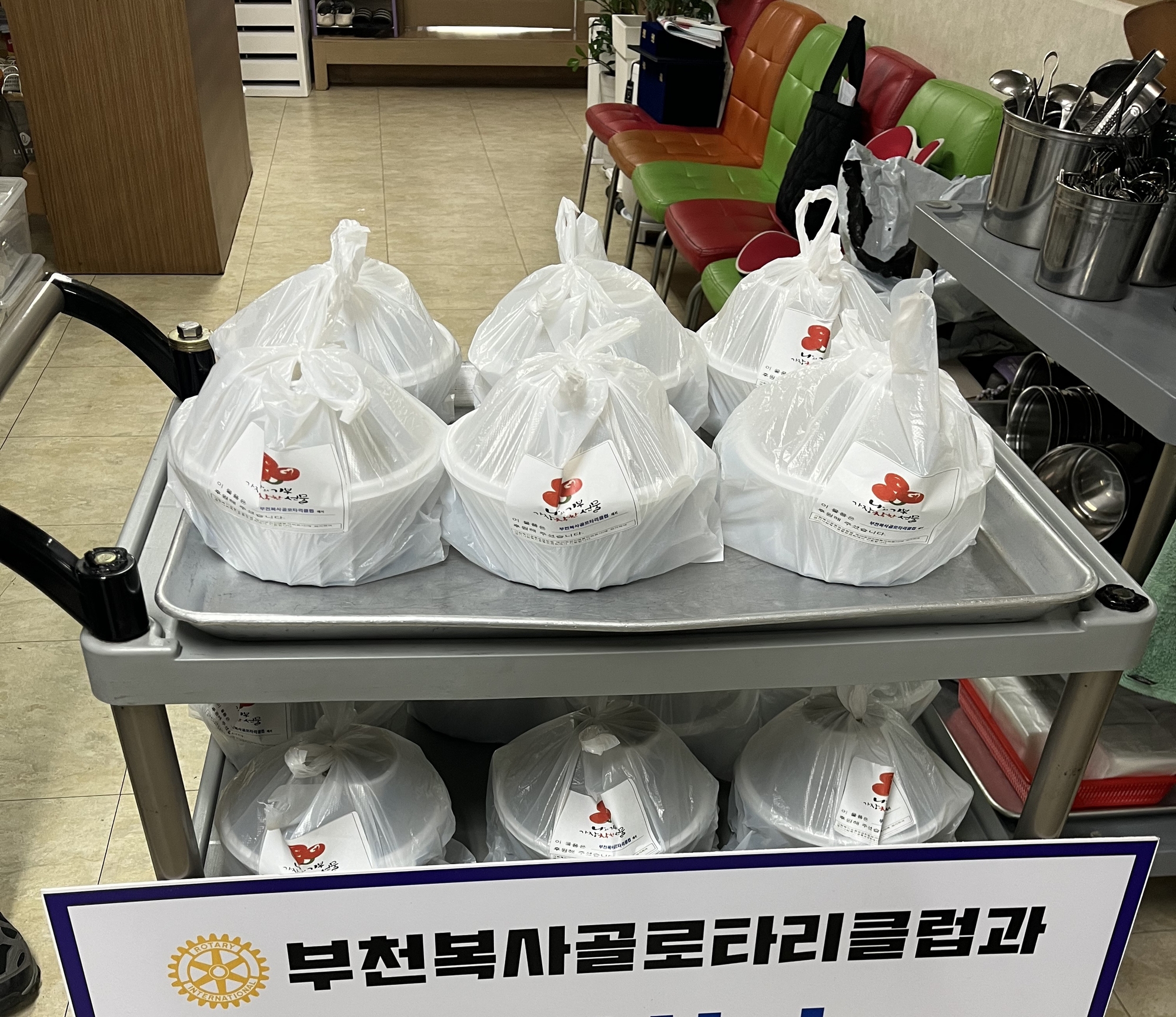 본클럽은 매월 셋째주 수요일(25.02.18.) 건강나눔밥상 봉사활동으로 황제오리(회장 최동경)사업장에서 한방삼계탕 55명분을 준비하여 독거어르신및 취약계층어르신께 심곡1동 25명 , 심곡3동 30명 어르신께