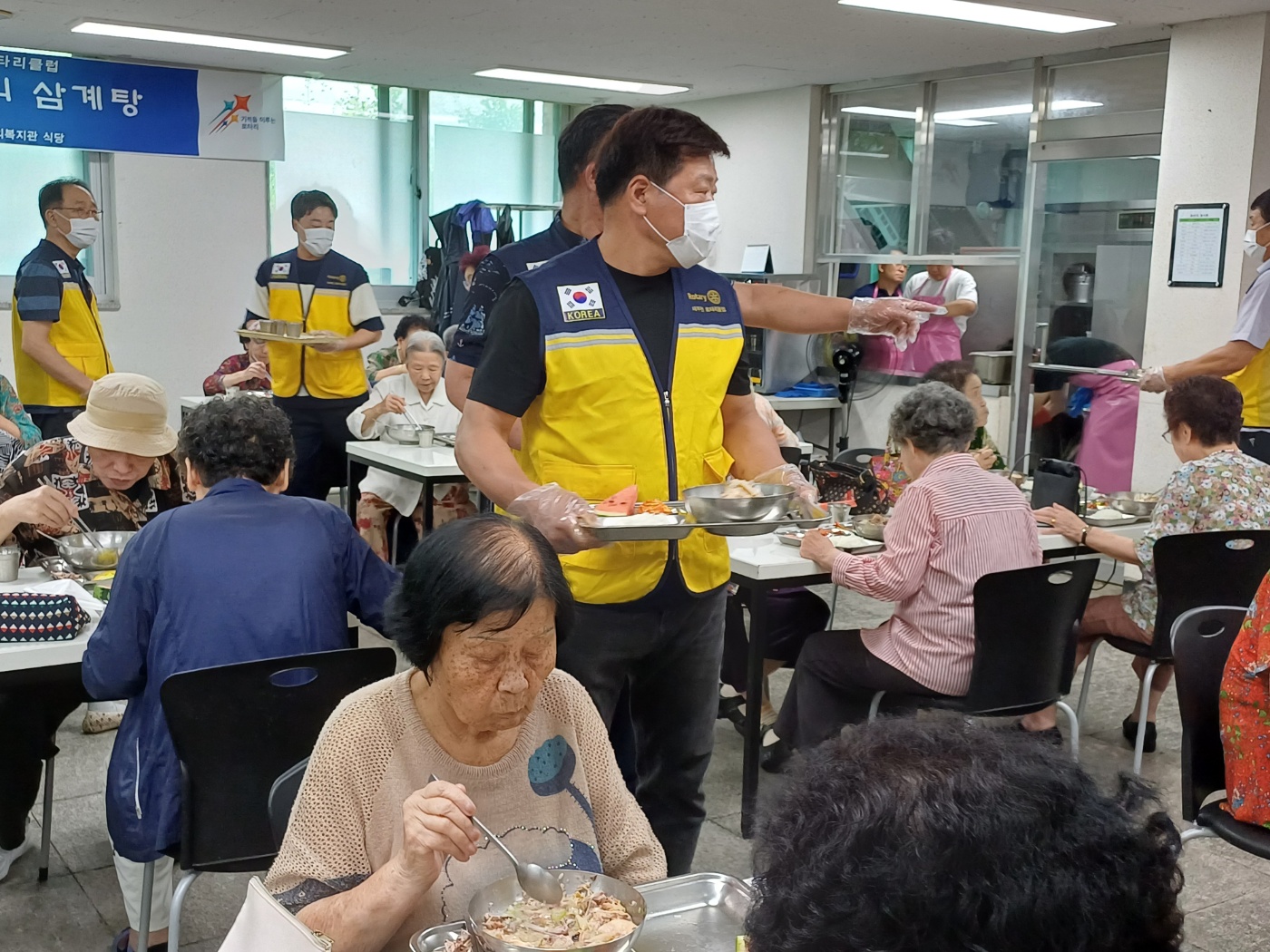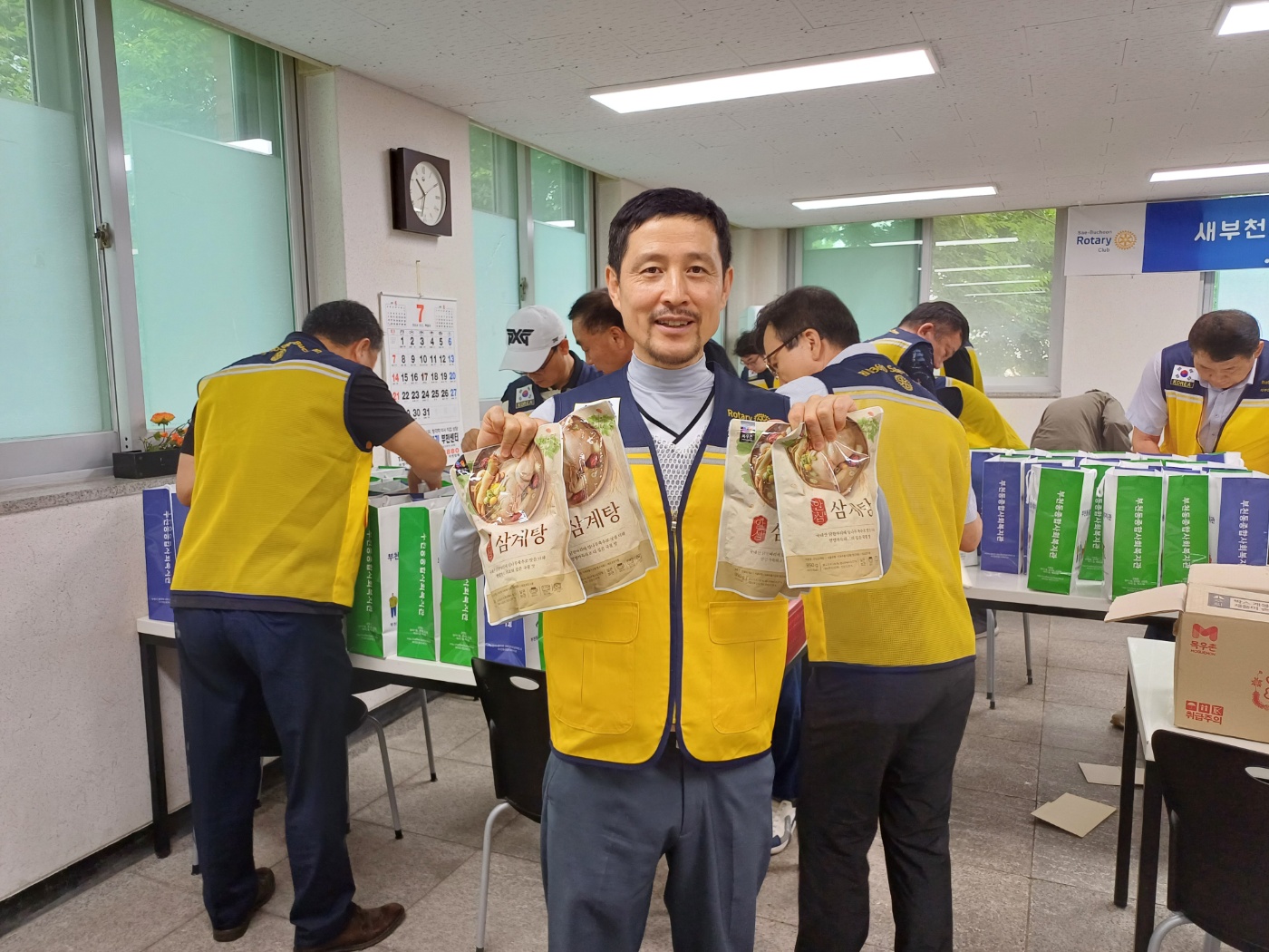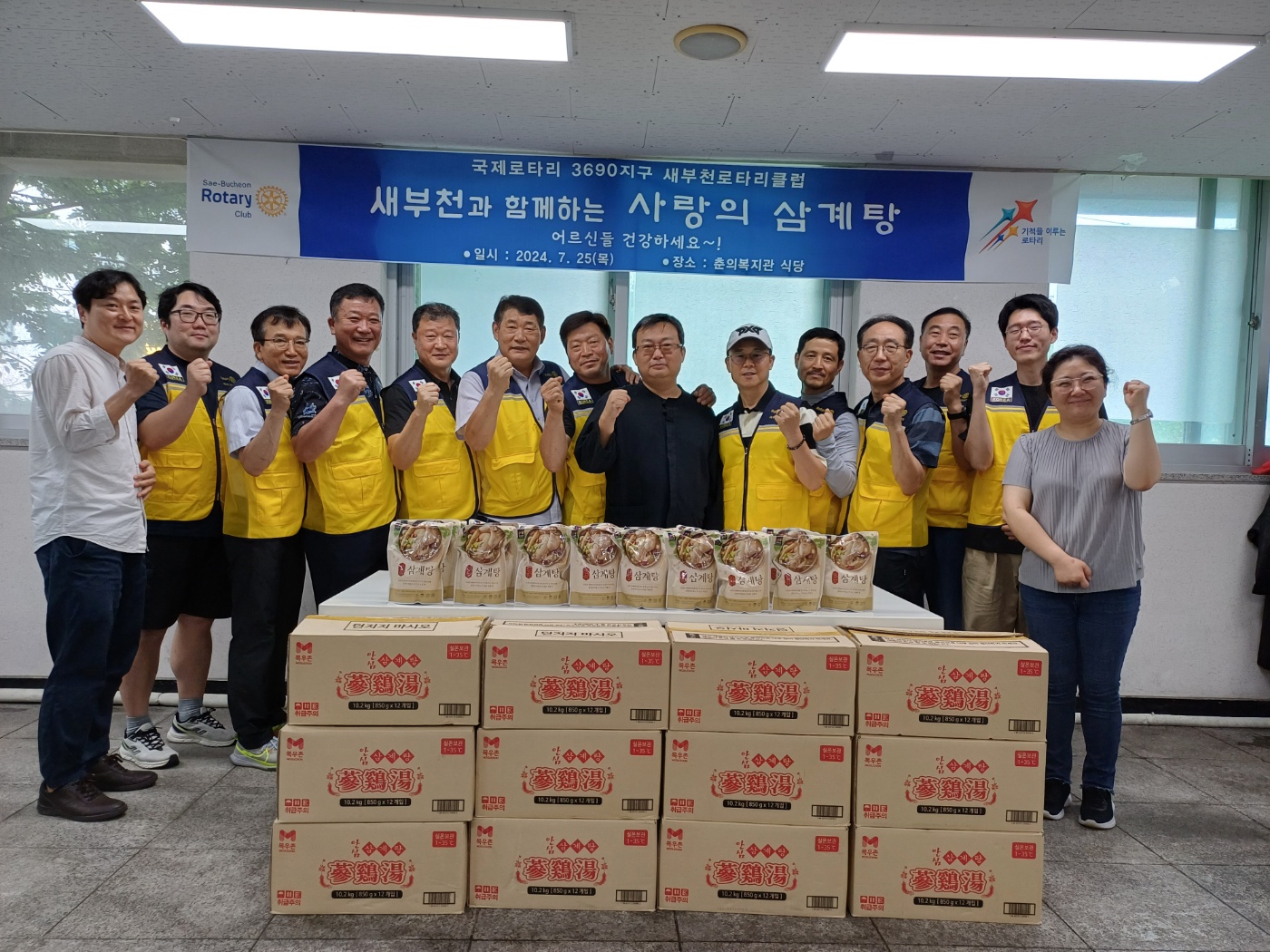 새부천RC 회장(해송 정승용)은 2024.07.25일(목) 중복을 맞이하여 회원들과 함께 저소득층 어르신들에게 삼계탕 접대를 하였습니다.