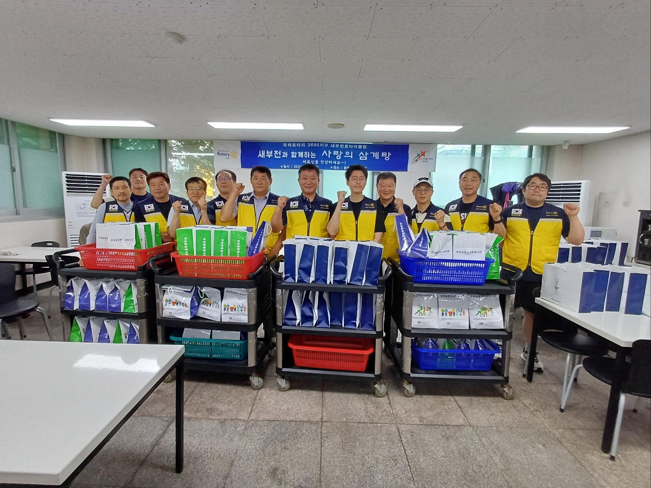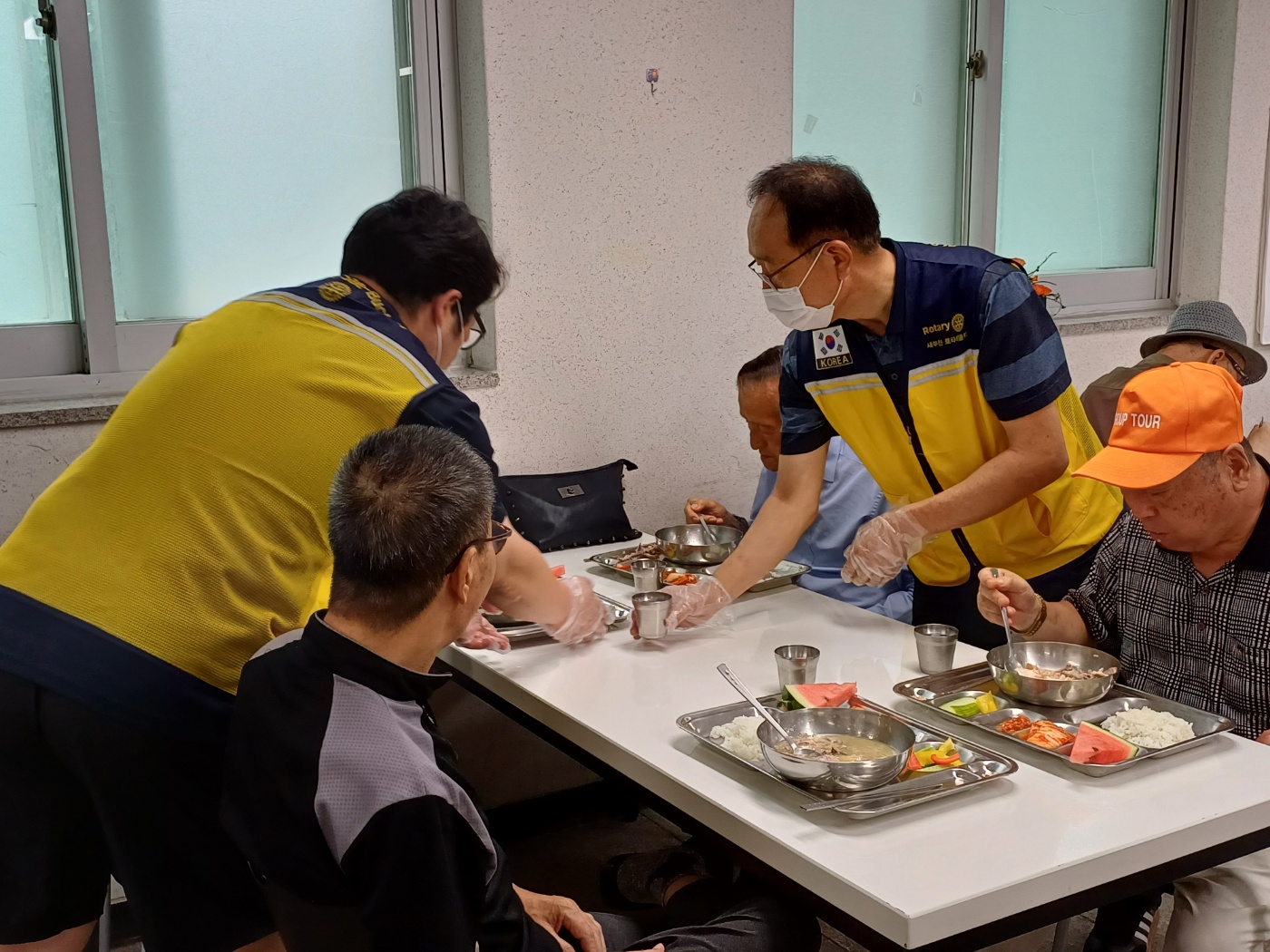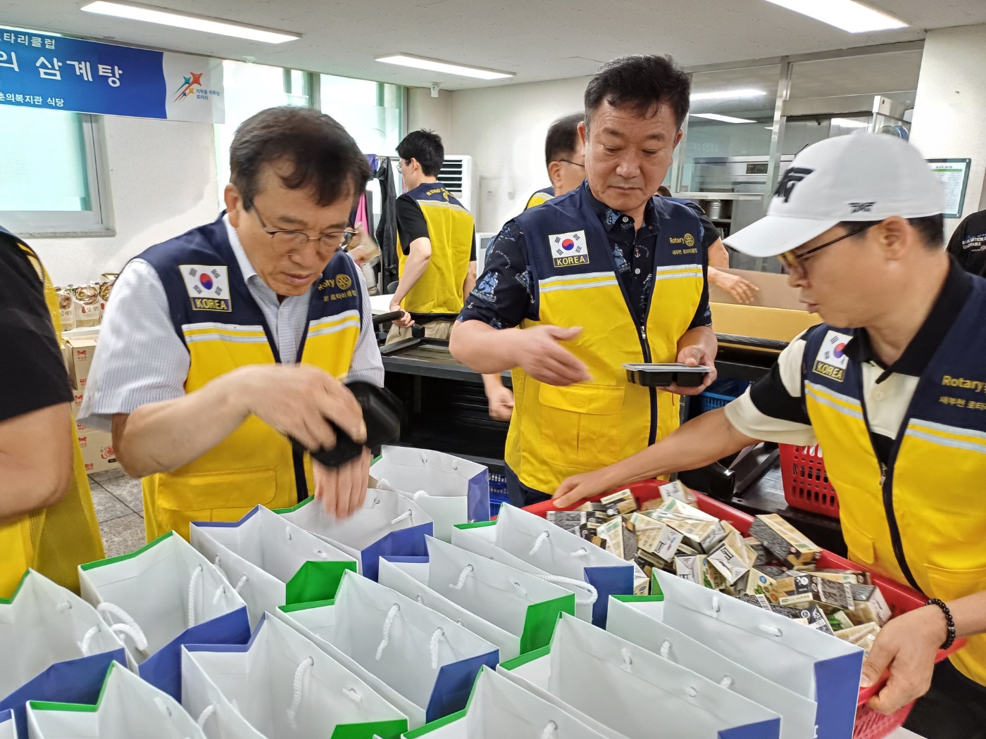 새부천RC 회장(해송 정승용)은 2024.07.25일(목) 중복을 맞이하여 회원들과 함께 저소득층 어르신들에게 삼계탕 접대를 하였습니다.