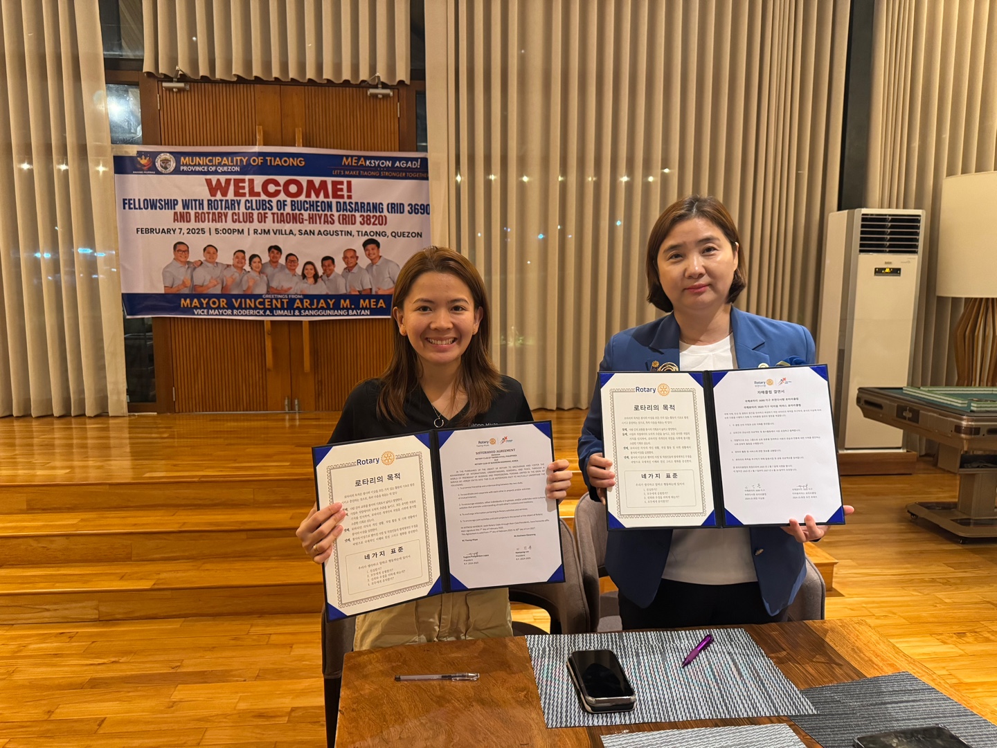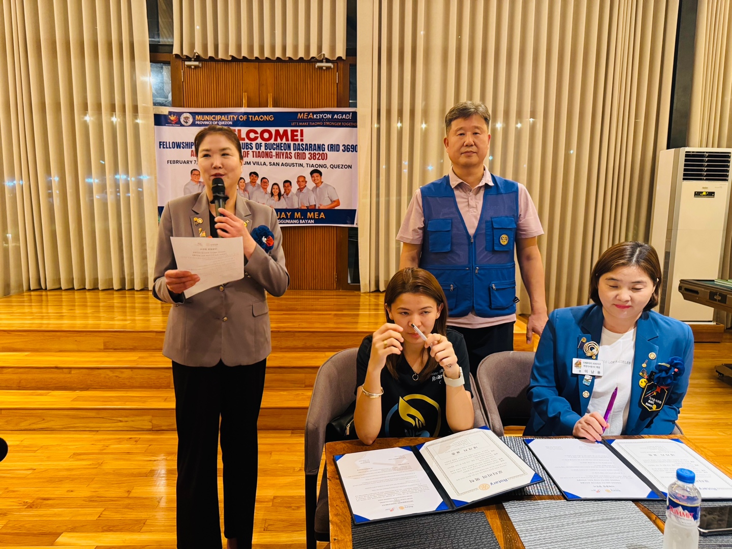 부천다사랑 로타리클럽 회장(몽 이남용)은 필리핀 3820지구 티아옹-히야스 클럽과 2년 간의 우호 클럽을 유지하여