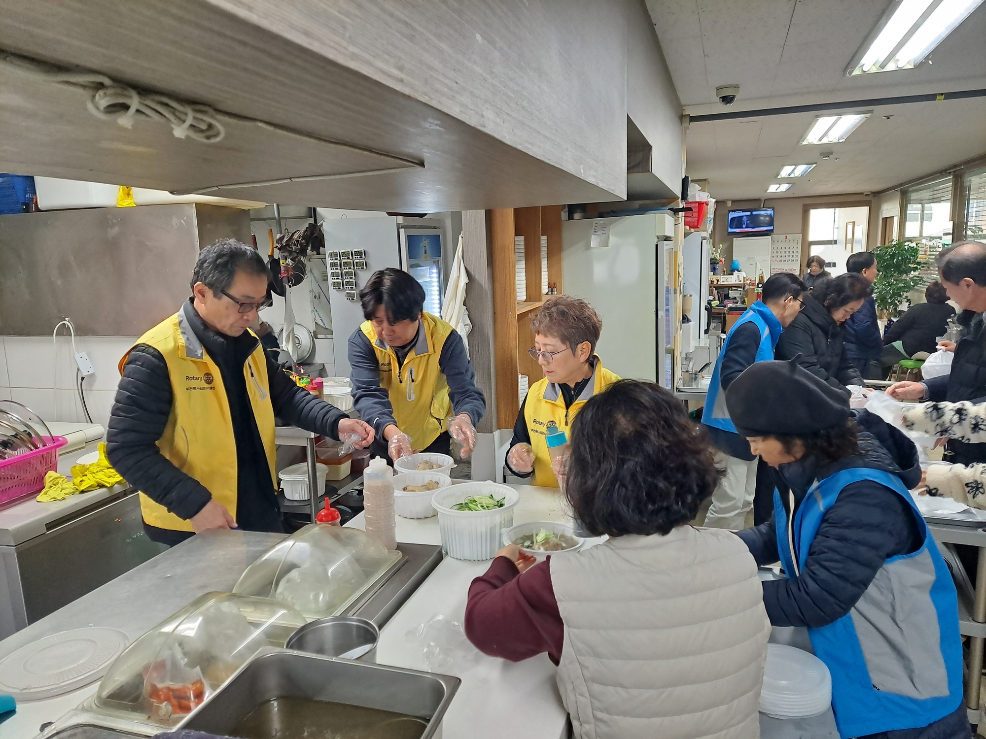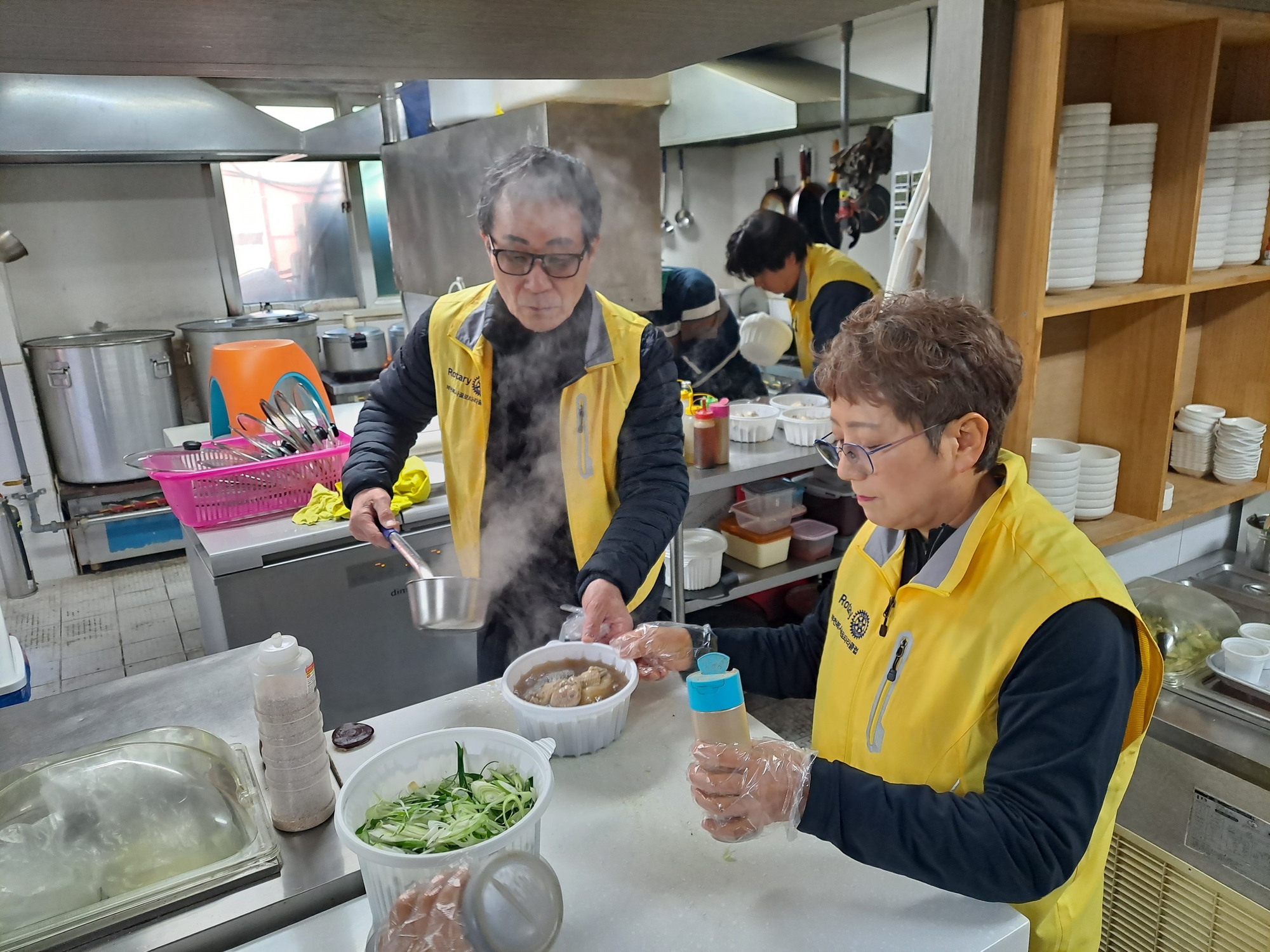 본클럽 매월 셋째주(수) "건강나눔밥상" 봉사를 평관 최동경회장님 사업장인 황제오리에서 한방 삼계탕 55명분을 준비하여 독거어르신및 취약계층어르신께