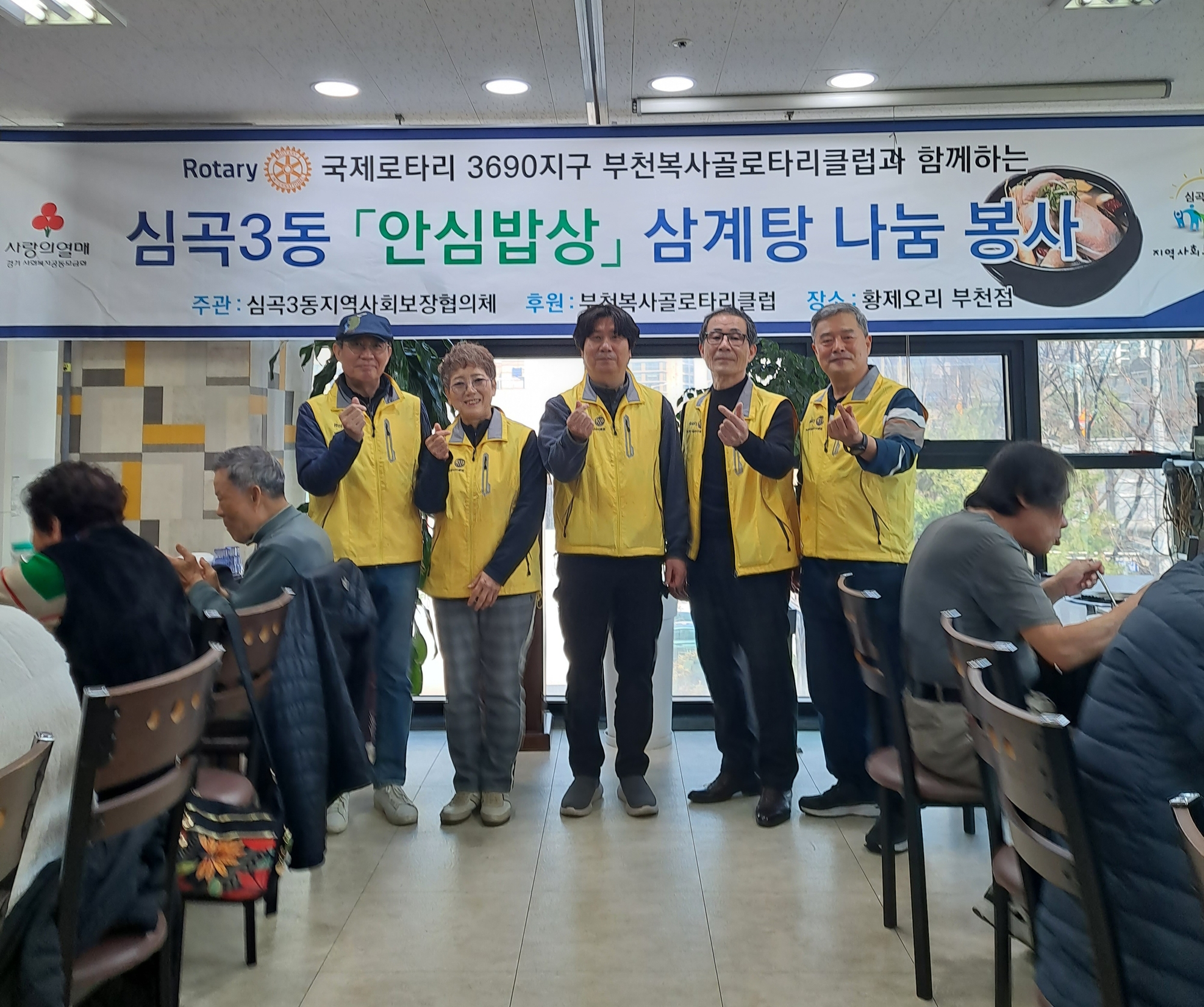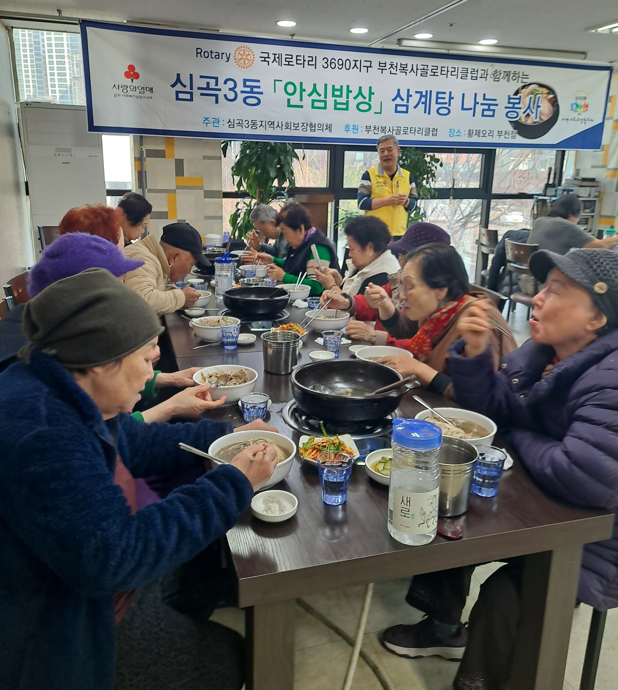 3월달에는 심곡1동 25명께 복지협의회 협조로 배달봉사와 심곡3동 30명 어르신을 황제오리로 모셔서한방 삼계탕 식사 대접으로 즐겁고 보람된 봉사를 하였습니다.