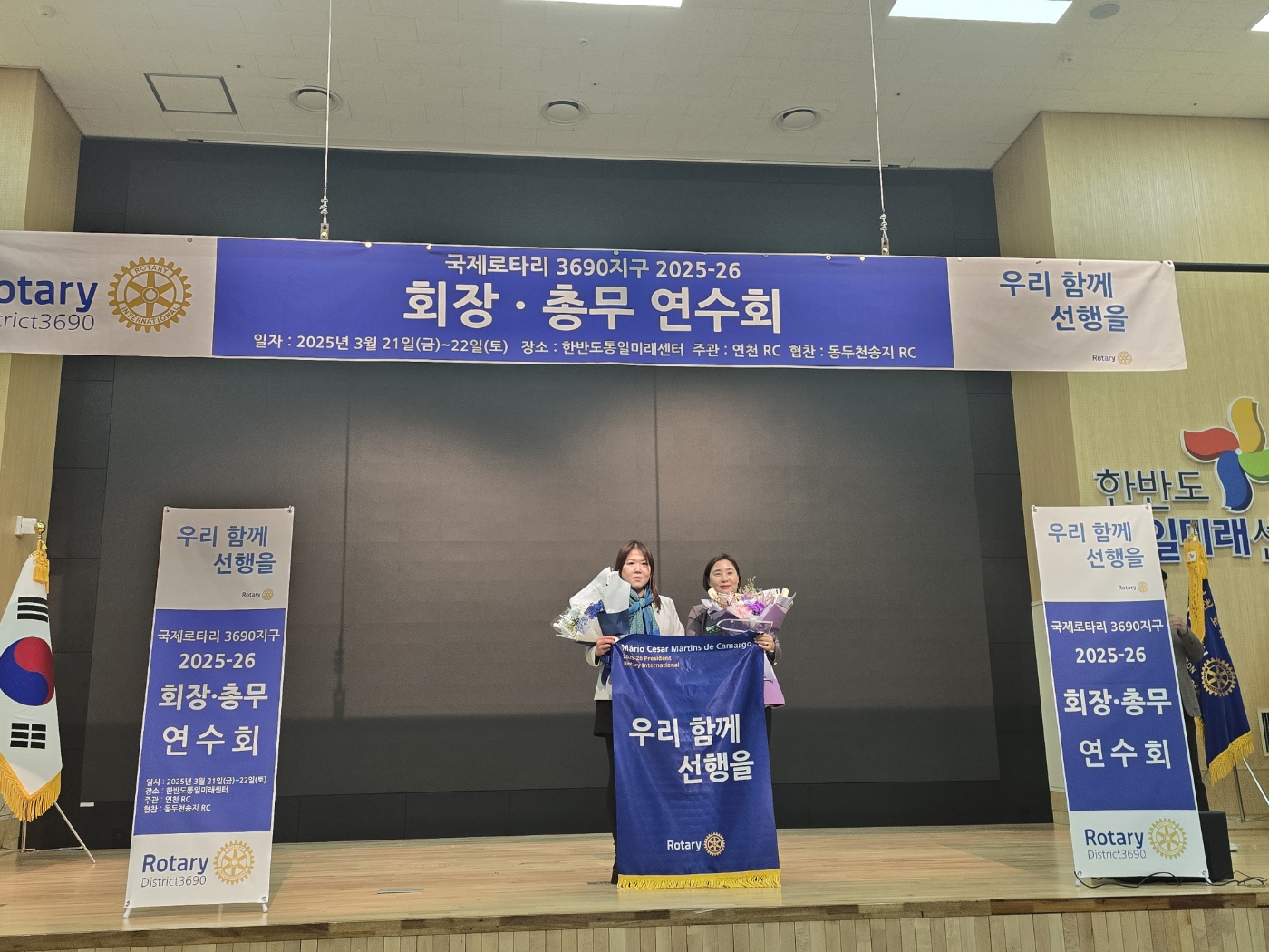 부천다사랑RC 차기회장 몽 이남용님, 차기총무 땅스 도주영님은 2025.03.21~22일 (1박2일) 경기도 연천군에 위치한 한반도통일미래센터에서 차기 회장,총무 연수회에 다녀오셨습니다.