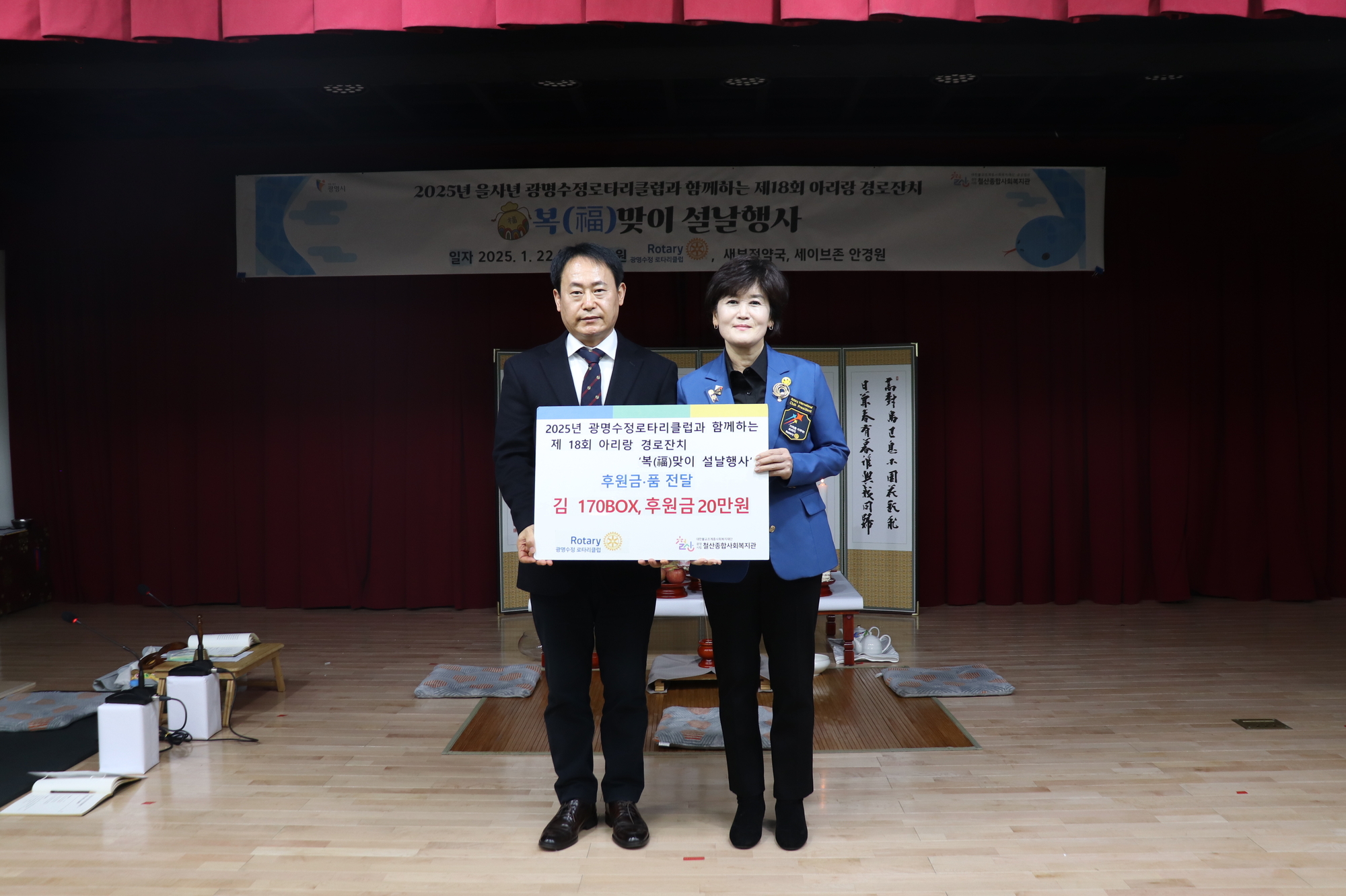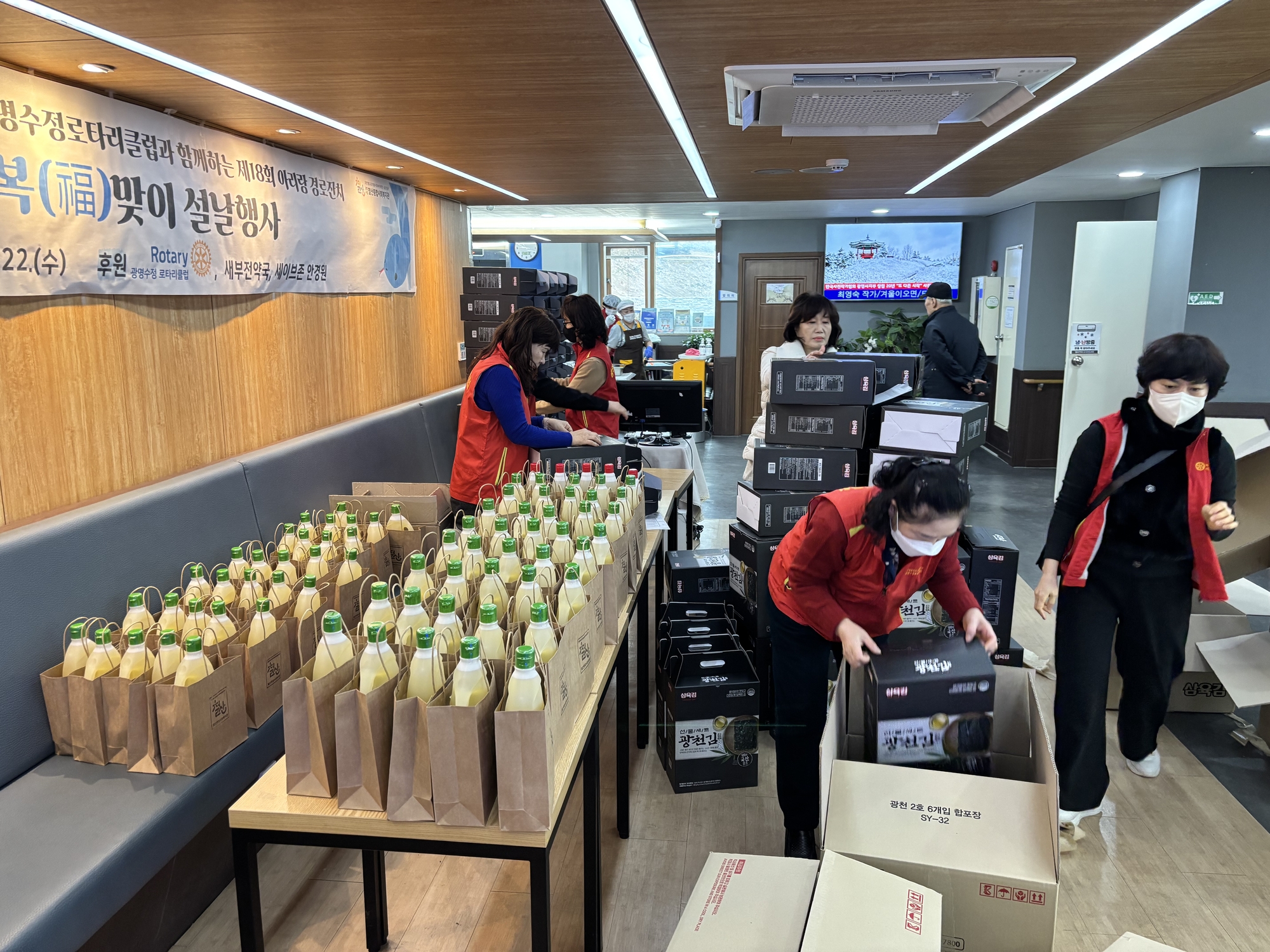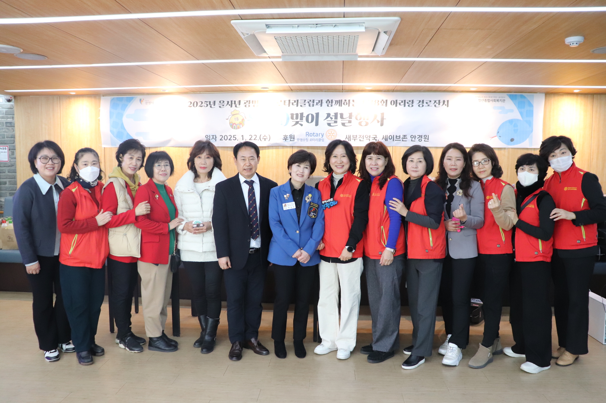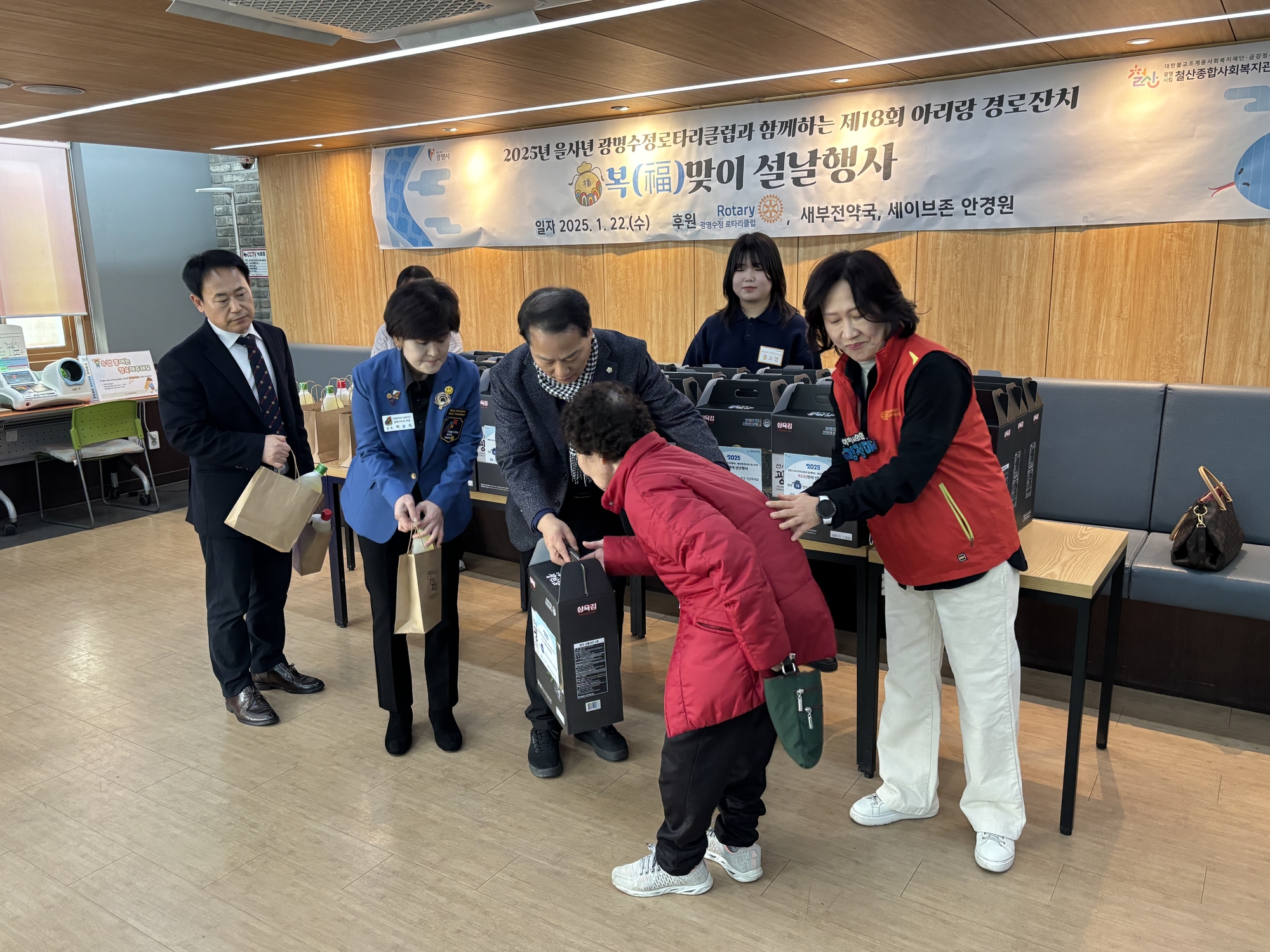 광명수정 로타리클럽(회장 정현 백승옥)은 설날을 맞이하여 철산종합사회복지관 이용 어르신들에게 공경의 마음을 담아 아리랑 경로잔치를 열어드리고 있습니다.