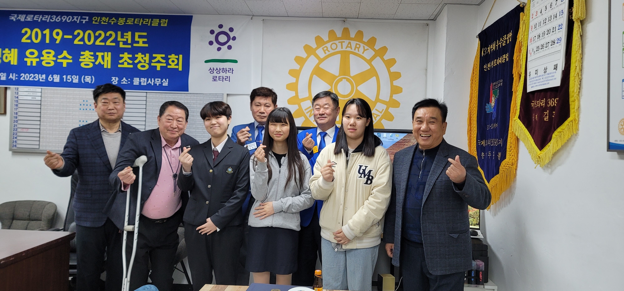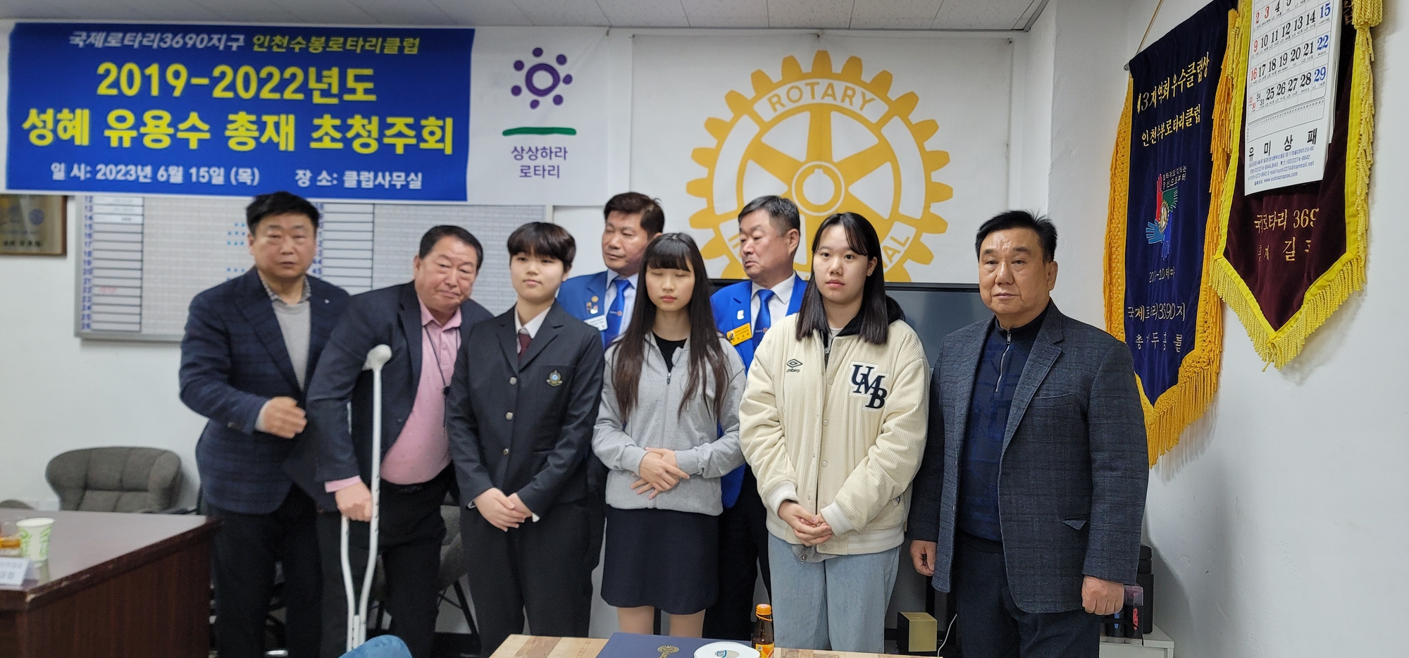 인천수봉로타리클럽은 2월 22일 일일 호프에서 마련한 기금으로 고등학교 2명 대학생 2명 을 50만원씩 200만원을 전달하였습니다.