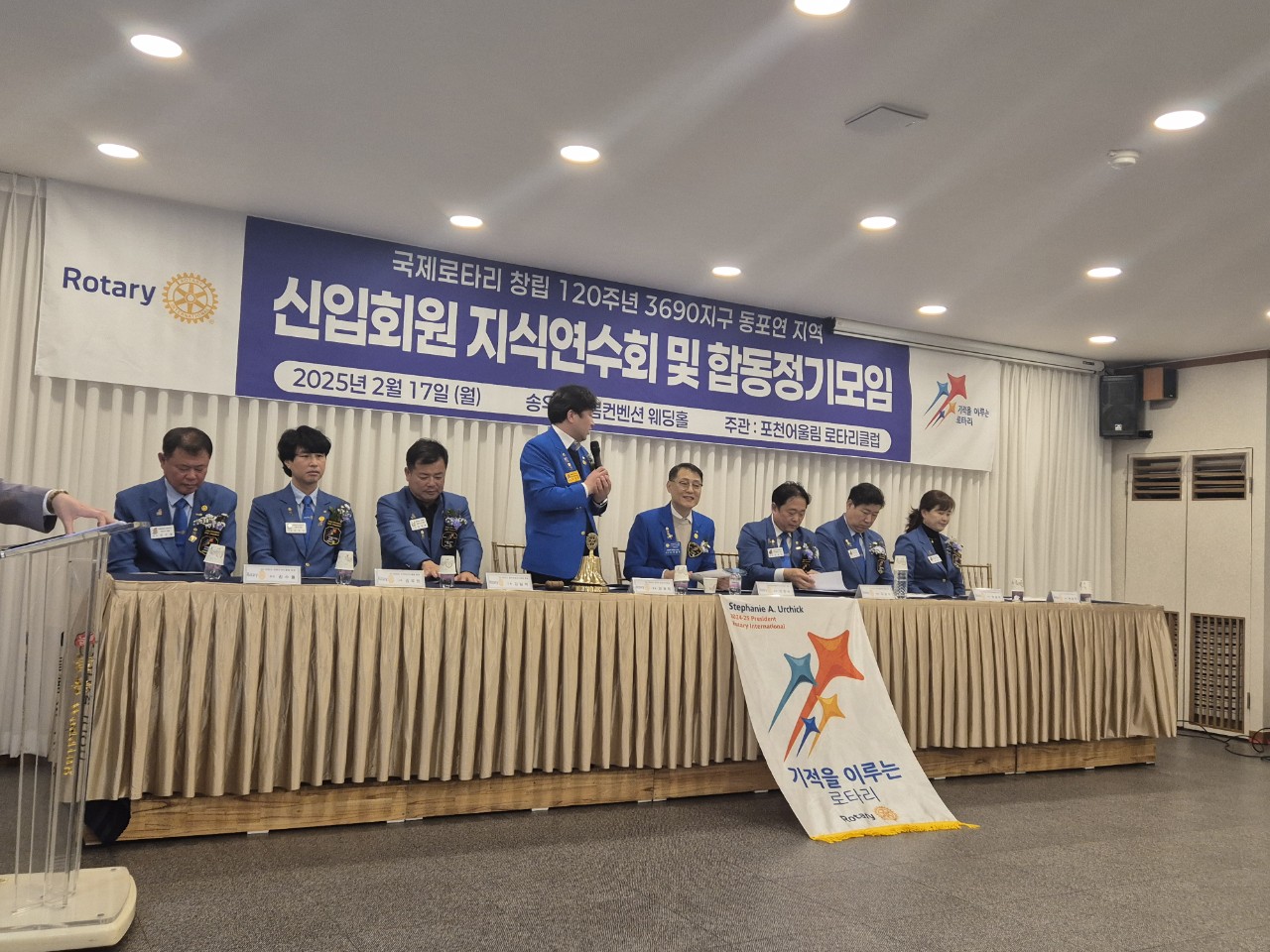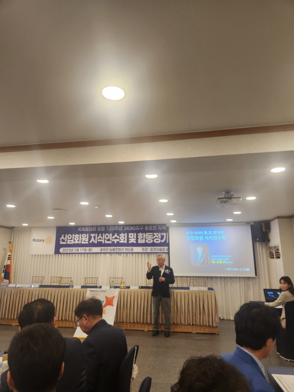 2025년 2월 17일(월) 포천 늘봄 컨벤션웨딩홀 에서 국제로타리 창립 120주년 기념 신입회원 지식연수회 및 합동정기모임이 성황리에 개최되었습니다. 이번 행사는 포천어울림 로타리클럽이 주관하였으며, 신입회원 지식연수회는 백호 김용진 전 총재님이 강사로 나서 의미 있는 강의를 진행하였습니다.