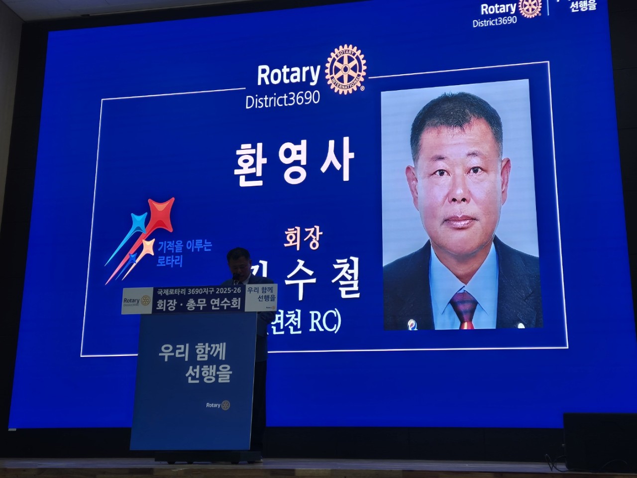 국제로타리 세계회장 마리오 세자르 마르틴 데 카마르고는 “우리 함께, 선행을”이라는 슬로건과 함께 혁신, 연속성, 파트너십의 중요성을 강조했습니다. 또한, 연천로타리클럽의 성장 과정이 소개되며, 소규모 클럽도 충분히 발전할 수 있다는 희망을 심어주었습니다.