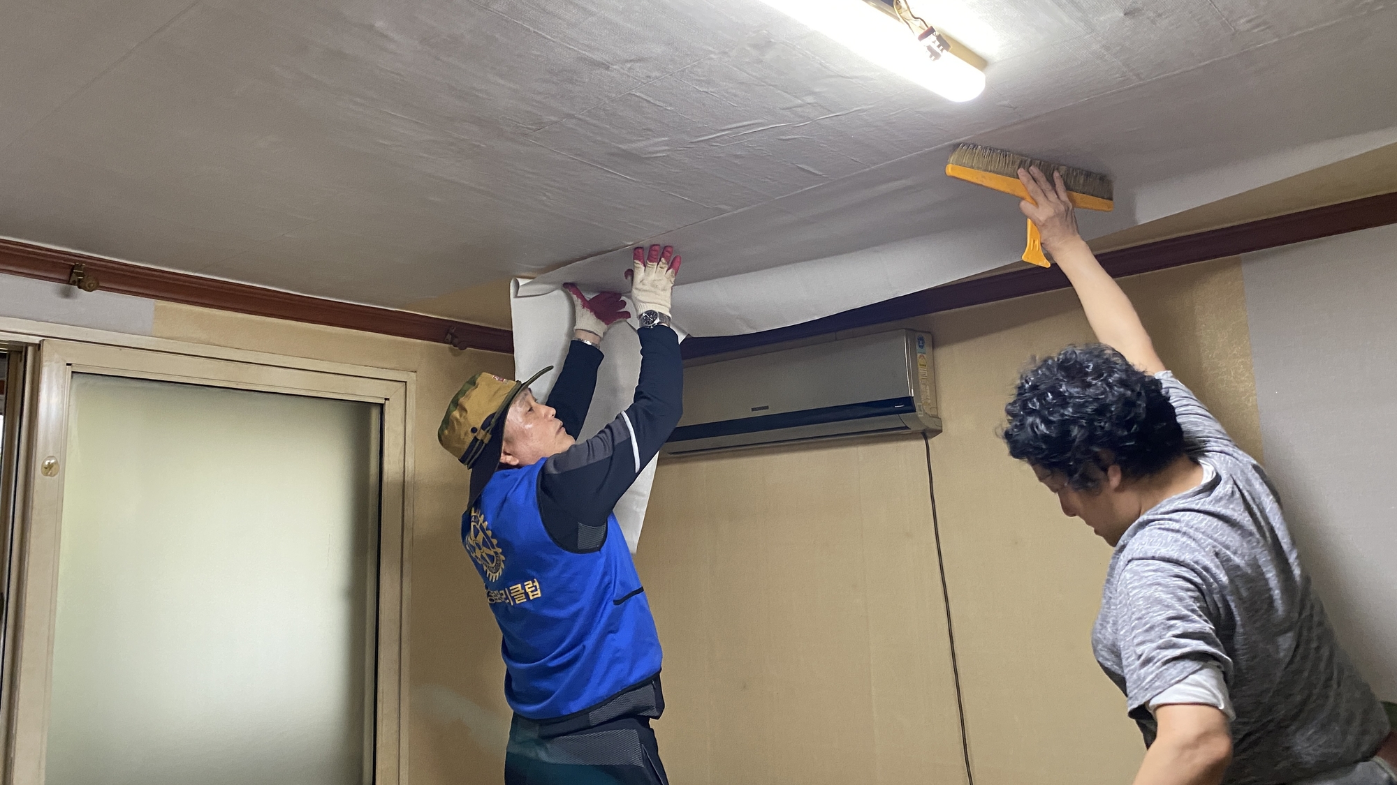 허리 척추협착장애로 거동이 불편한 독거어르신의 집 도배,장판 및 집안청소 등을 재능대로타랙트 학생들과 함께 진행하였습니다.