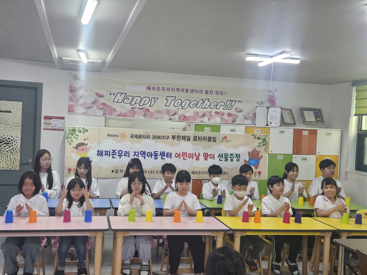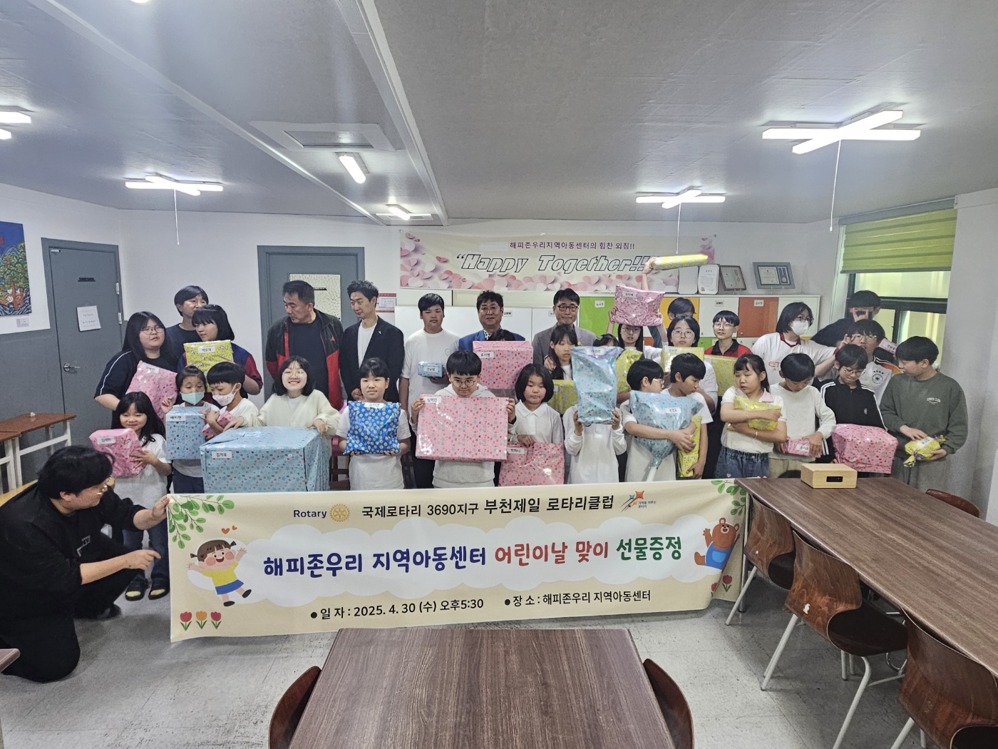 내용 : - 부천제일 로타리클럽(회장 이대연)은 해마다 어린이날에 지역아동센터 아이들 30명에게 맞춤형 선물 전달 및 소프라노 이희지 성악가의 성악 강습과 함께 아이들과 즐거운 하루를 보냈습니다.