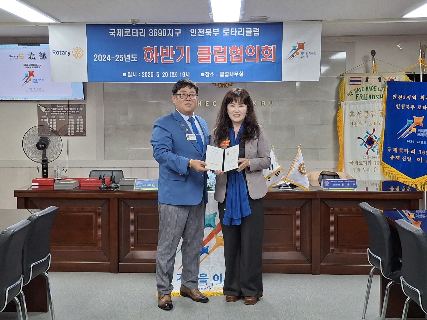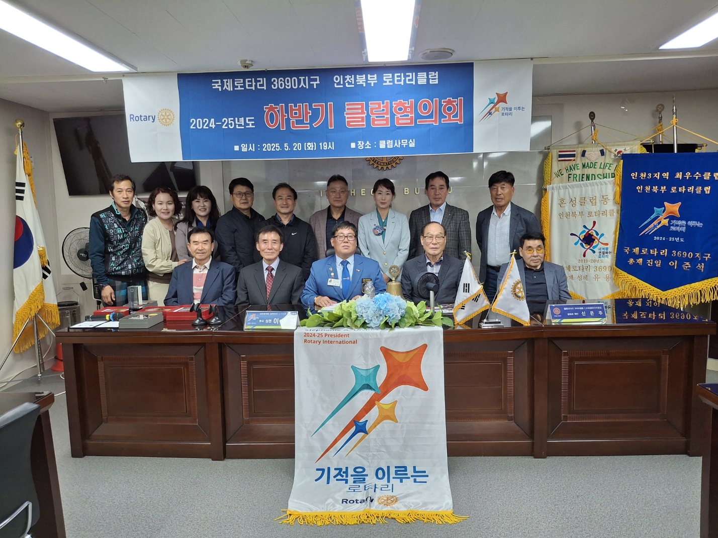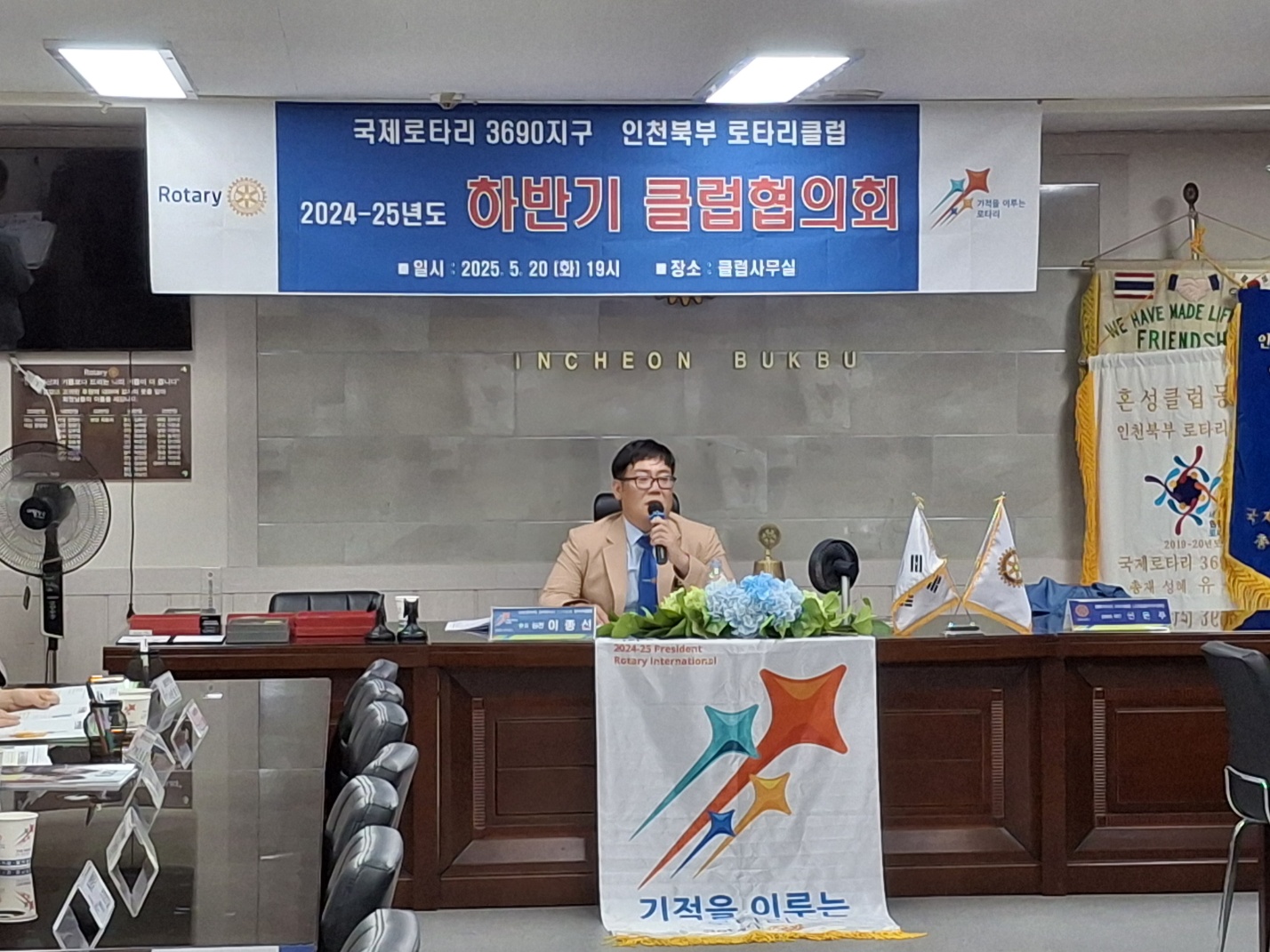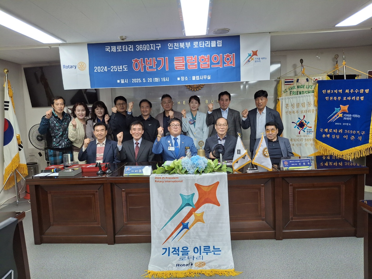 -내용: 인천북부로타리클럽(회장 상천 이종선)은 2024-25년도 하반기 클럽협의회를 개최하여 각 분과별로 1년 동안의 활동 보고와 결산 보고를 하고, 25-26년도 예산안과 5분과 위원장들이 차기년도 사업계획을 발표하는 하는 자리를 통해 효율적인 클럽으로 거듭나고자 다짐하였습니다. 특히 이날은 역임하신 전임회장님 4분과 회원님이 참석하셔서 더욱 뜻깊은 시간이 되었습니다.