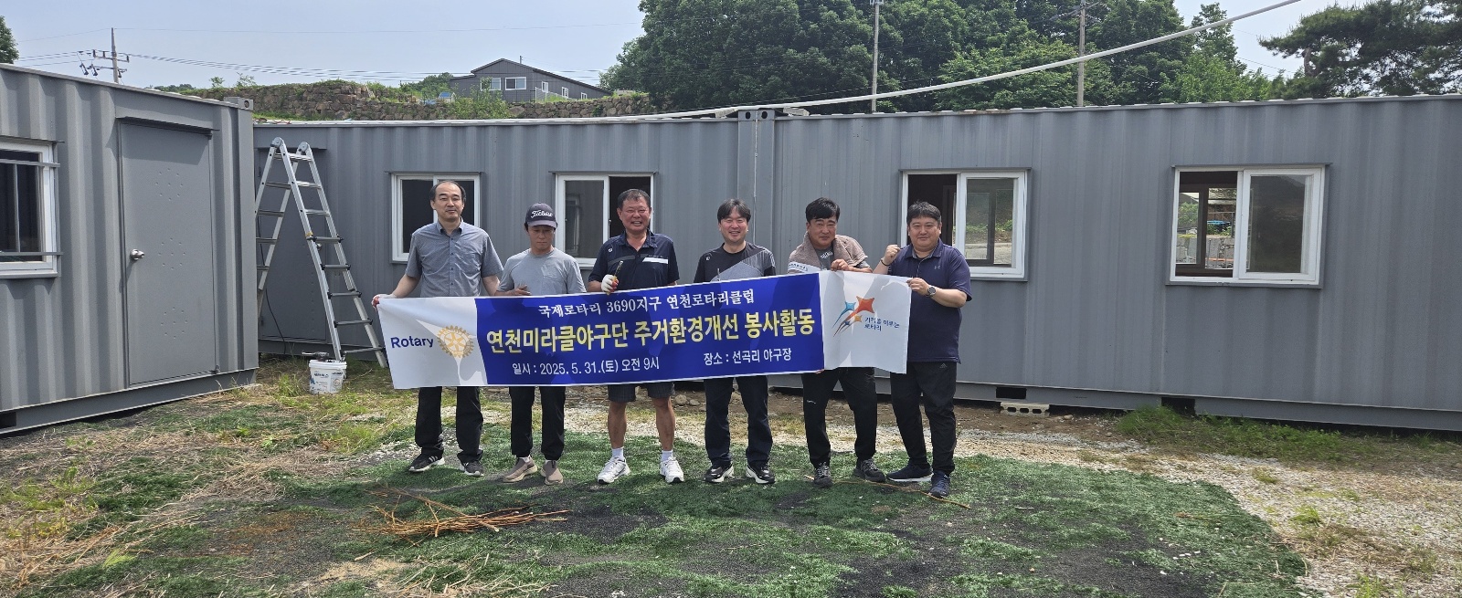 5월 31일(토) 오전 9시, 선곡리 야구장 인근에서 연천로타리클럽 회원들이 연천미라클야구단의 연습 사무실 환경 개선을 위한 봉사활동을 진행했습니다.