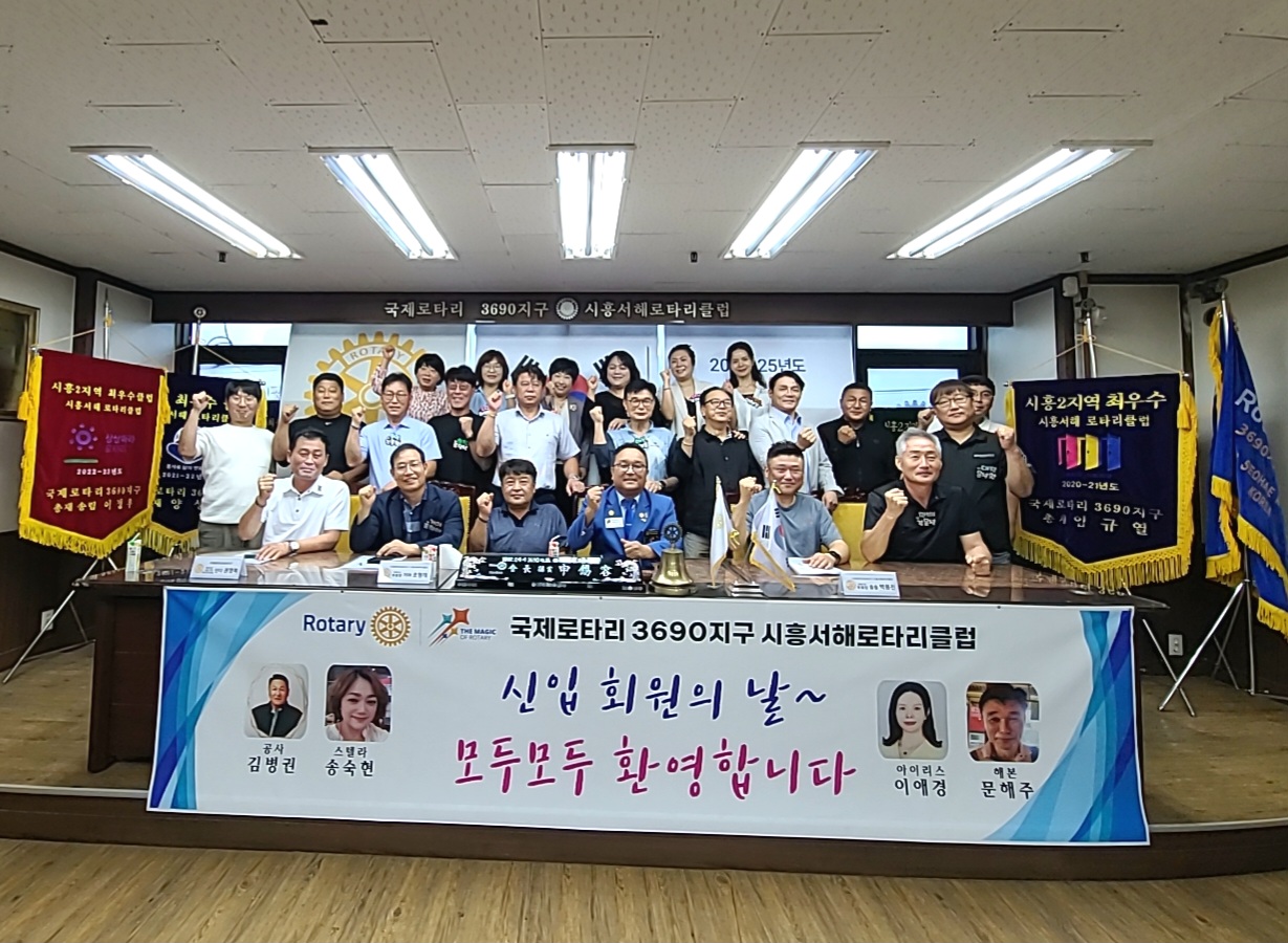 행사내용: 시흥서해로타리클럽은 정례주회때 금회기 입회하신 신입회원님을 축하하고 환영하는 시간을 가졌습니다.