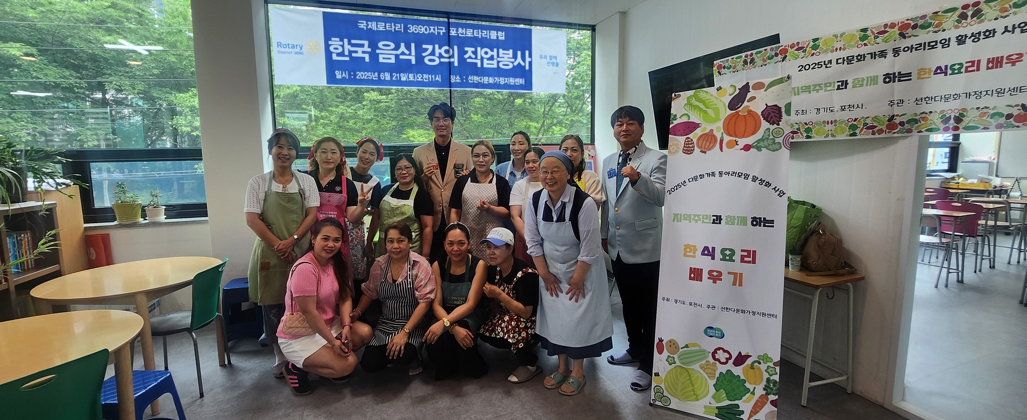 ▣ 내용: 포천RC(송백 양영철 취임 회장, 대범 유봉근 취임 총무)은 6월 21일 (토)요일 오전11시에 선한 다문화가정 지원센터에서 한국 음식 강의 재능 기부 봉사가 있었습니다.