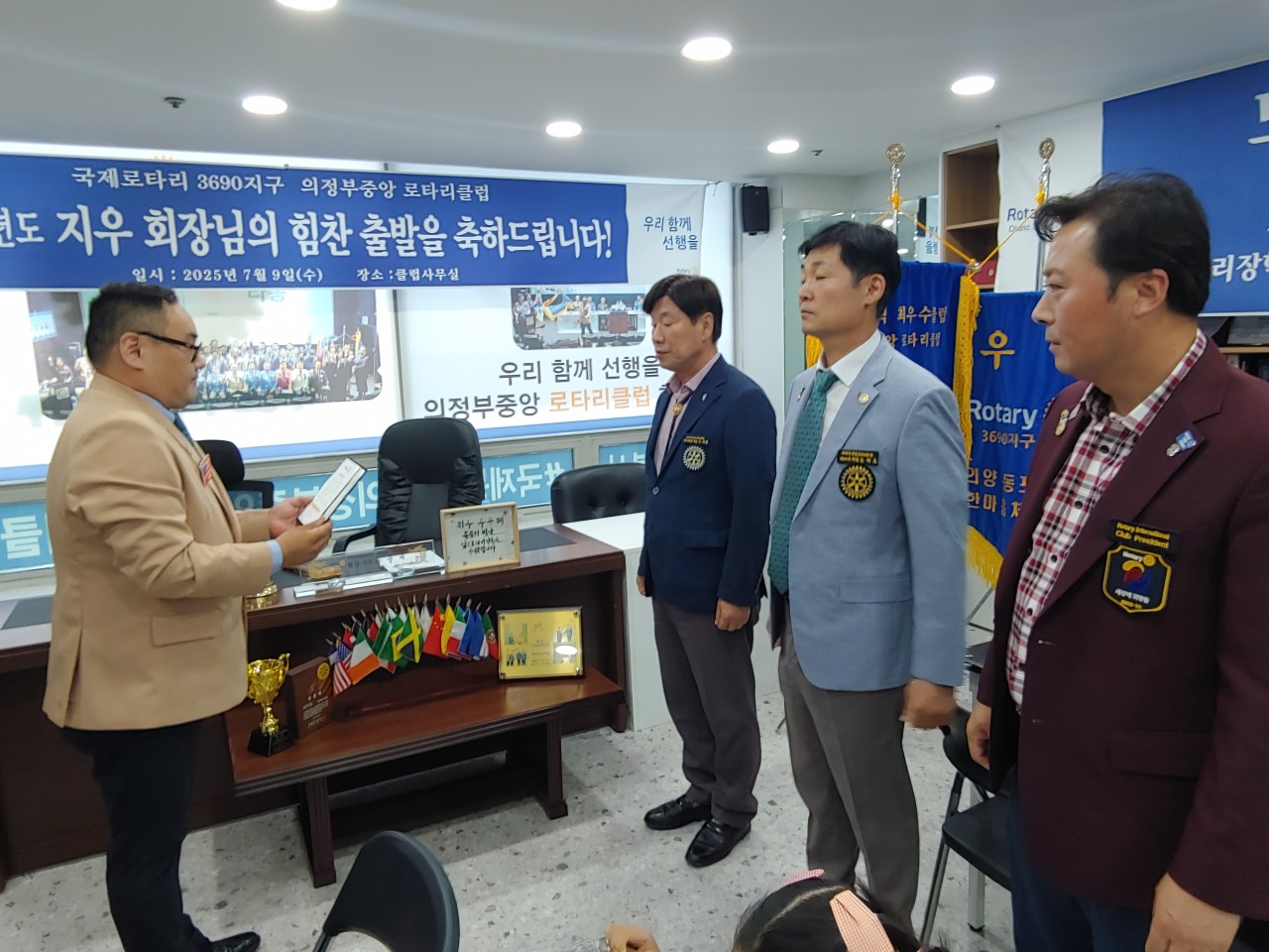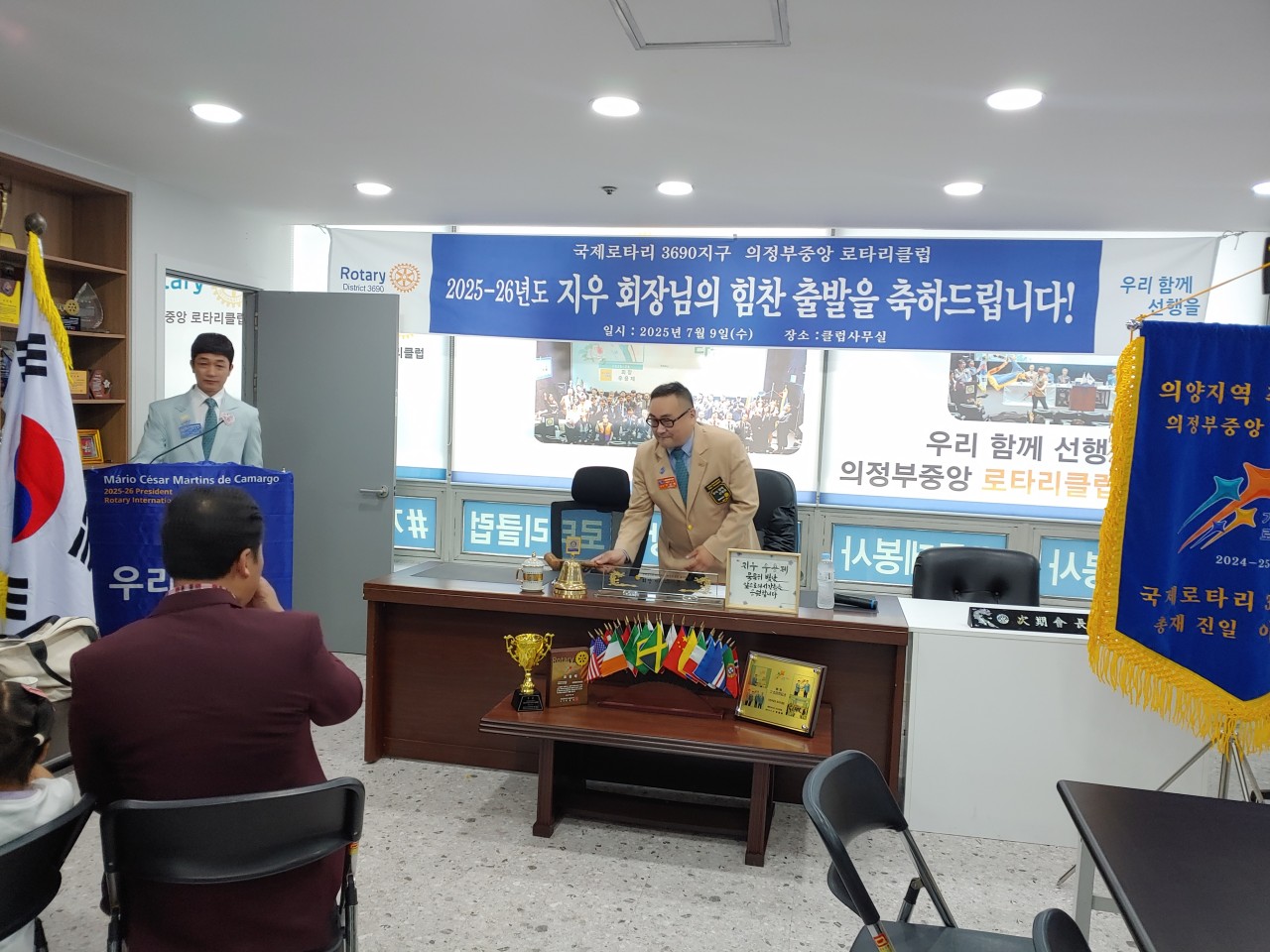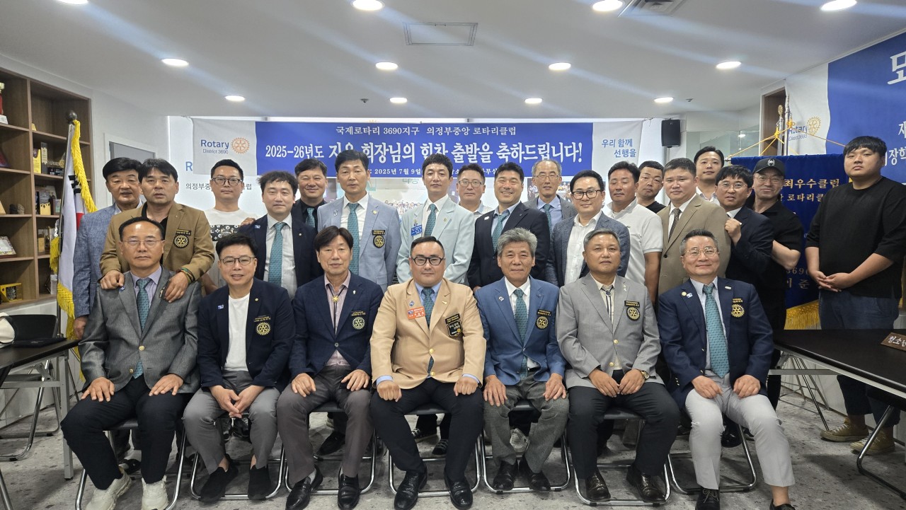 의정부중앙로타리클럽의 2025-26년도 첫 정기모임이 제34대 우용제 회장님의 진행으로 성황리에 열렸습니다.