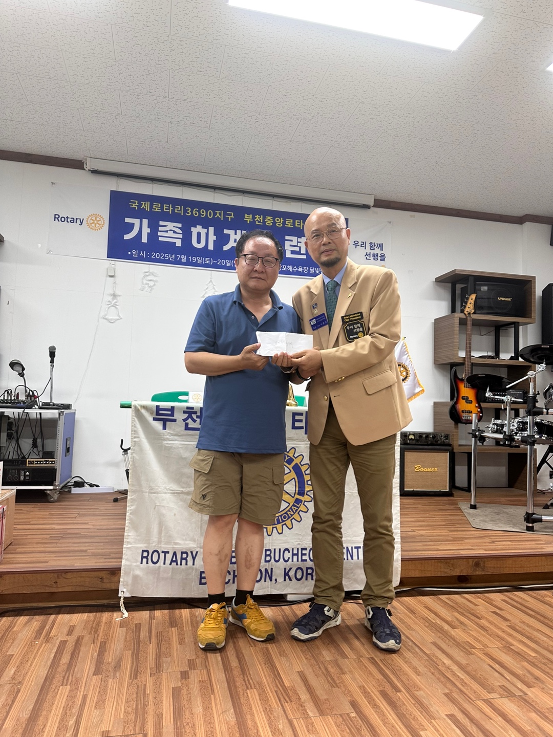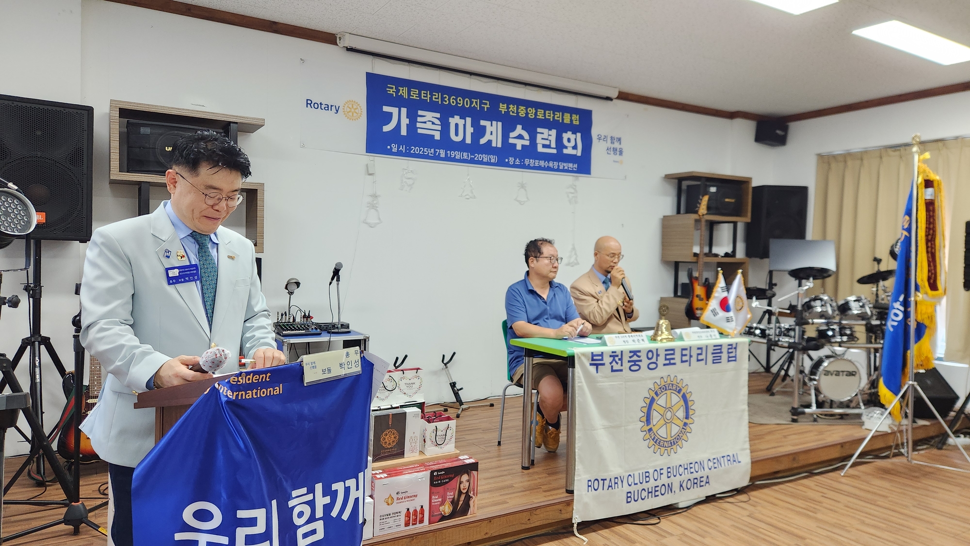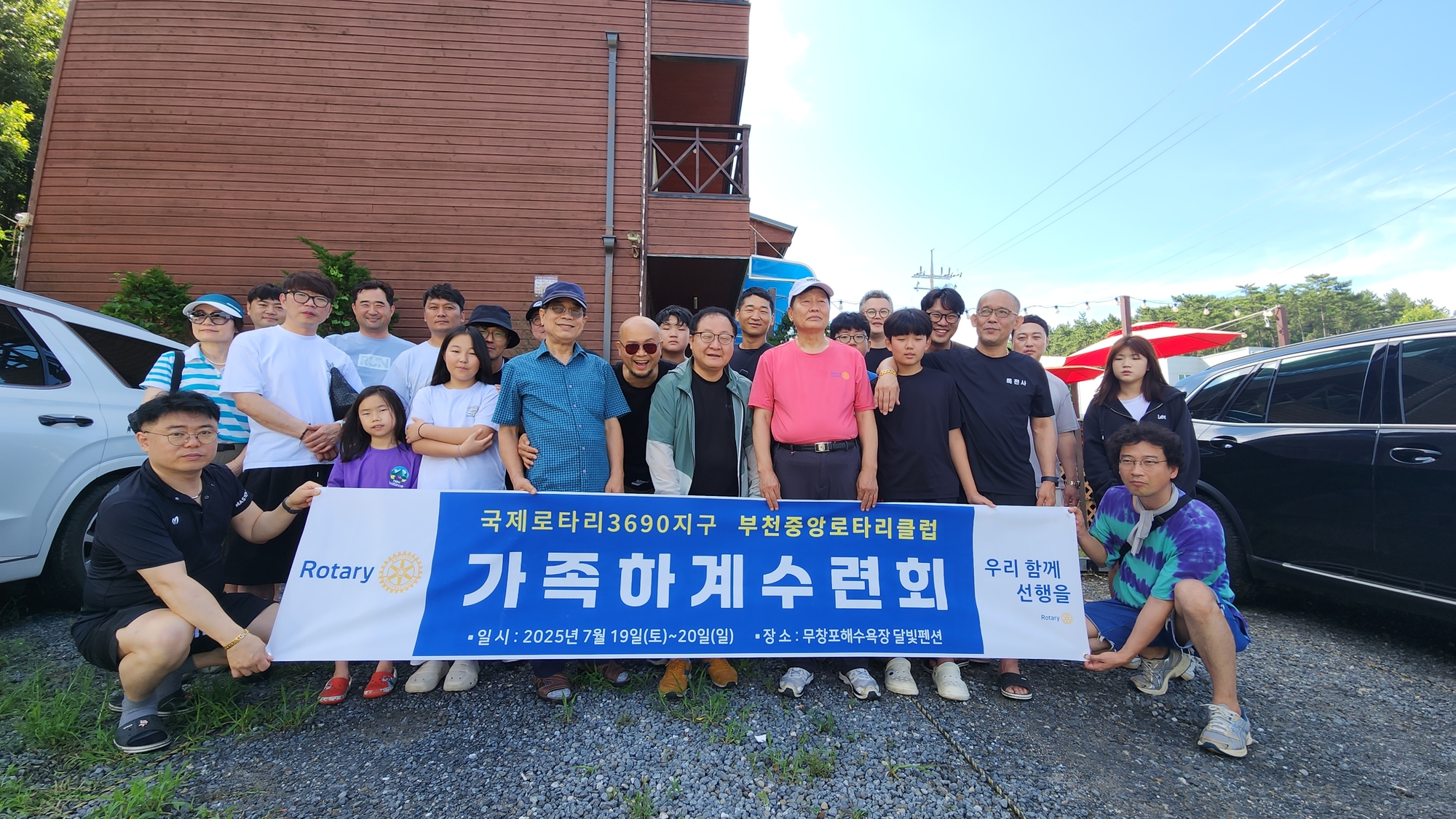 내용 : 부천중앙 로타리클럽 회원, 배우자, 가족을 포함 43명이 하계 수련회로 단합된 모습으로 행복한 시간을 보내고 더욱 "초아의봉사"을 위한 열정을 충전하였다.