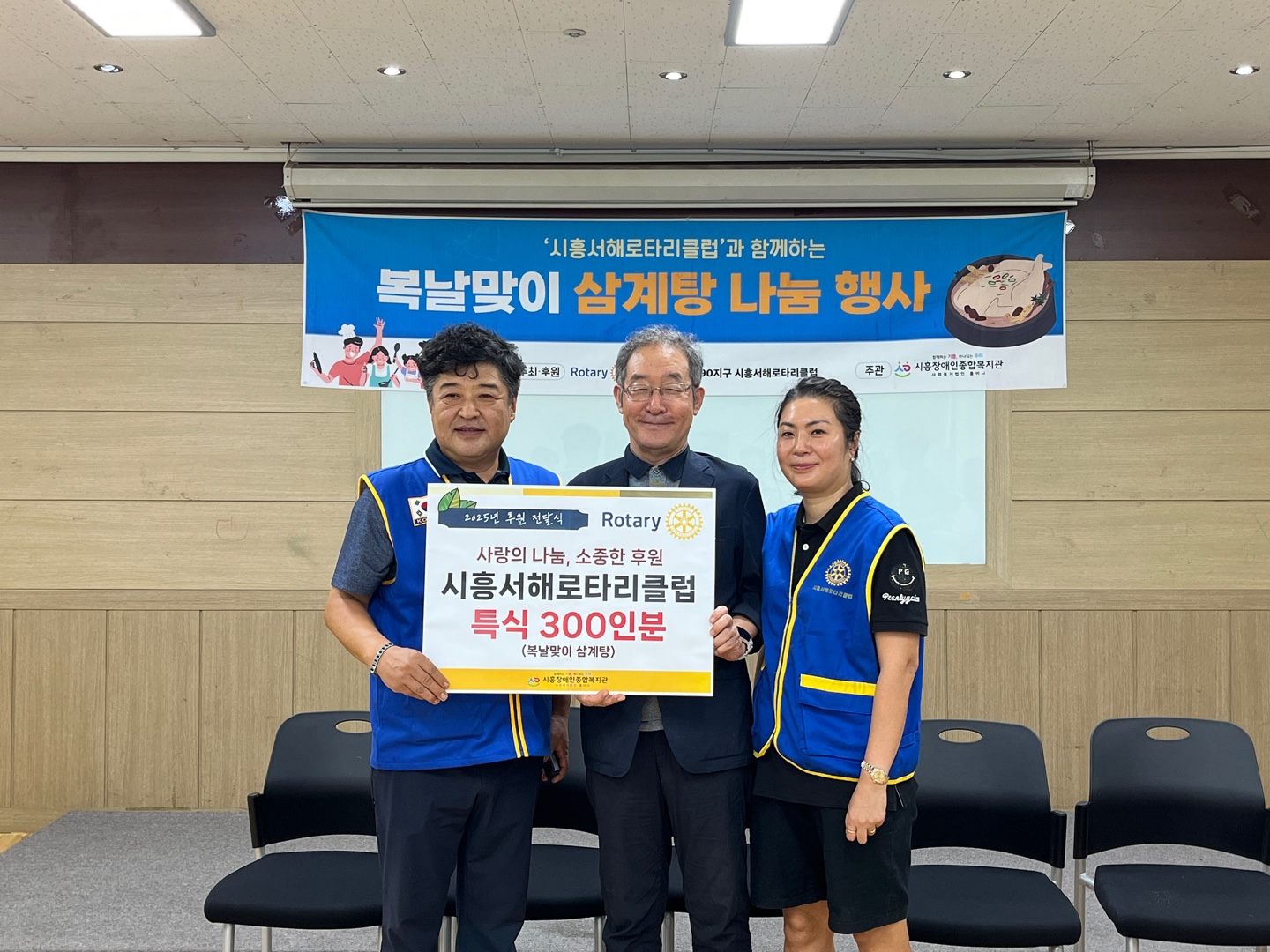 시흥서해로타리클럽은 삼계탕 300인분을 준비해서 시흥장애인종합복지관을 이용하시는 이웃들에게 정성껏 대접해 드렸습니다.