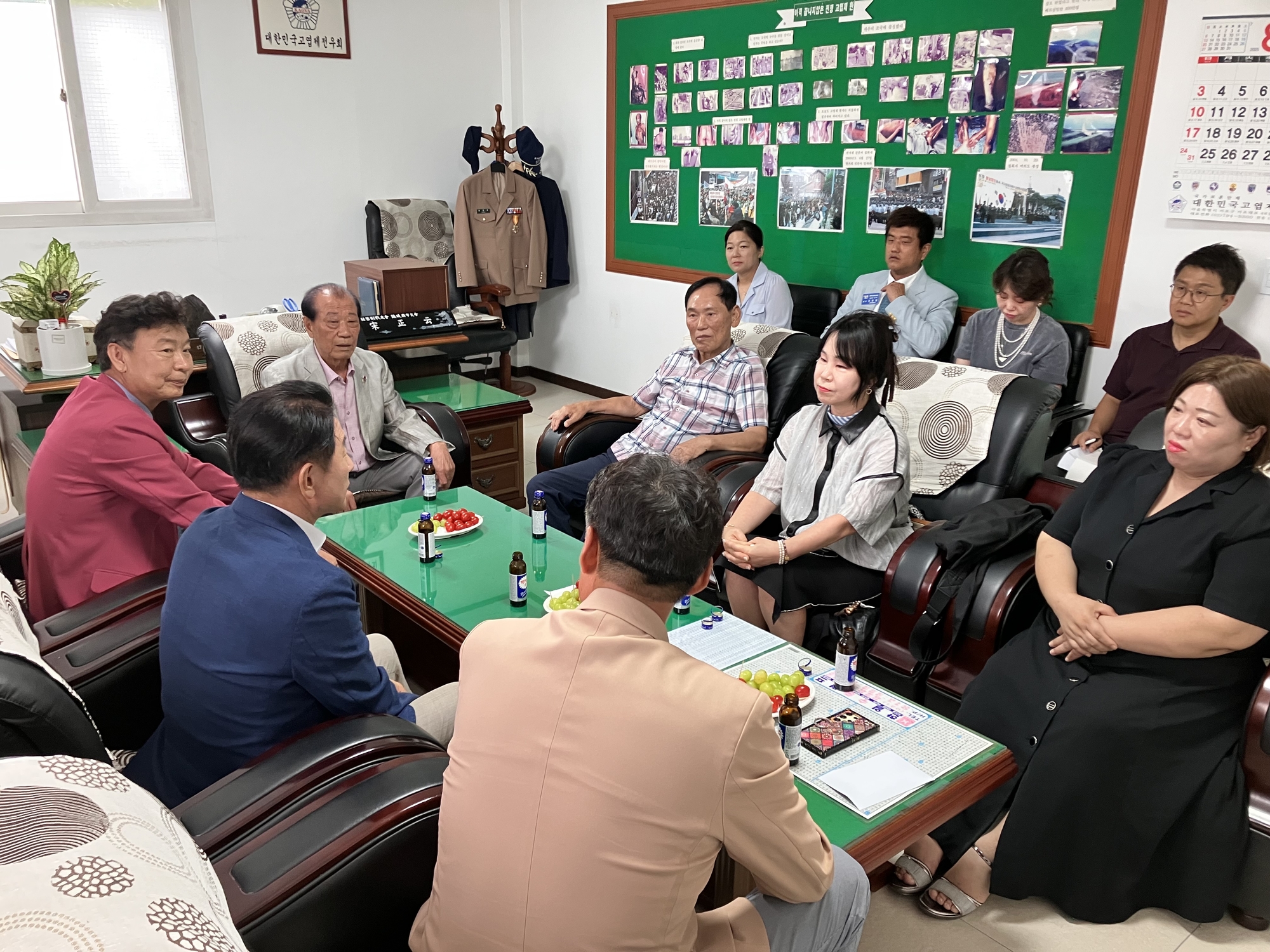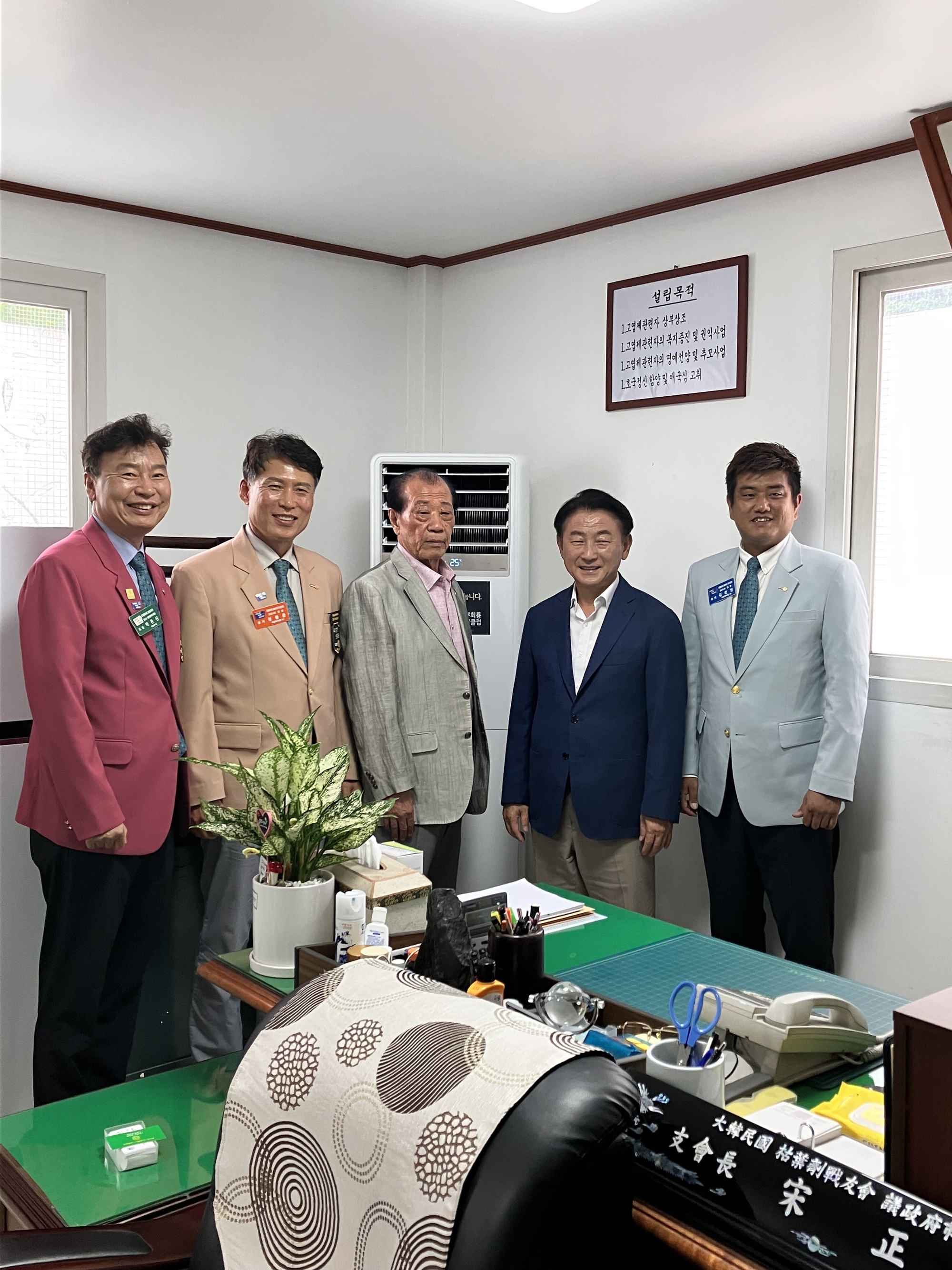 천지 정봉준 회장님과 의정부시 김동근 시장님, 고엽제 전우회 회장님, 박돈신 의양지역대표님, 의정부회룡RC 회원님들과 간담회를 진행하시며,