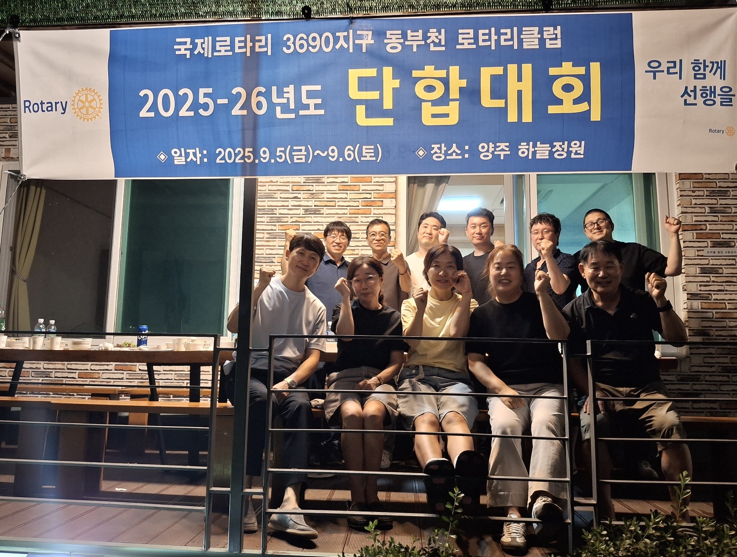 -내용: 동부천 로타리클럽(회장 윤재완)은 2025-26년도 단합대회를 개최하여 회원과 배우자님들이 한자리에 모여 친목을 도모하고 윷놀이를 하며 단합하는 시간을 가졌다.