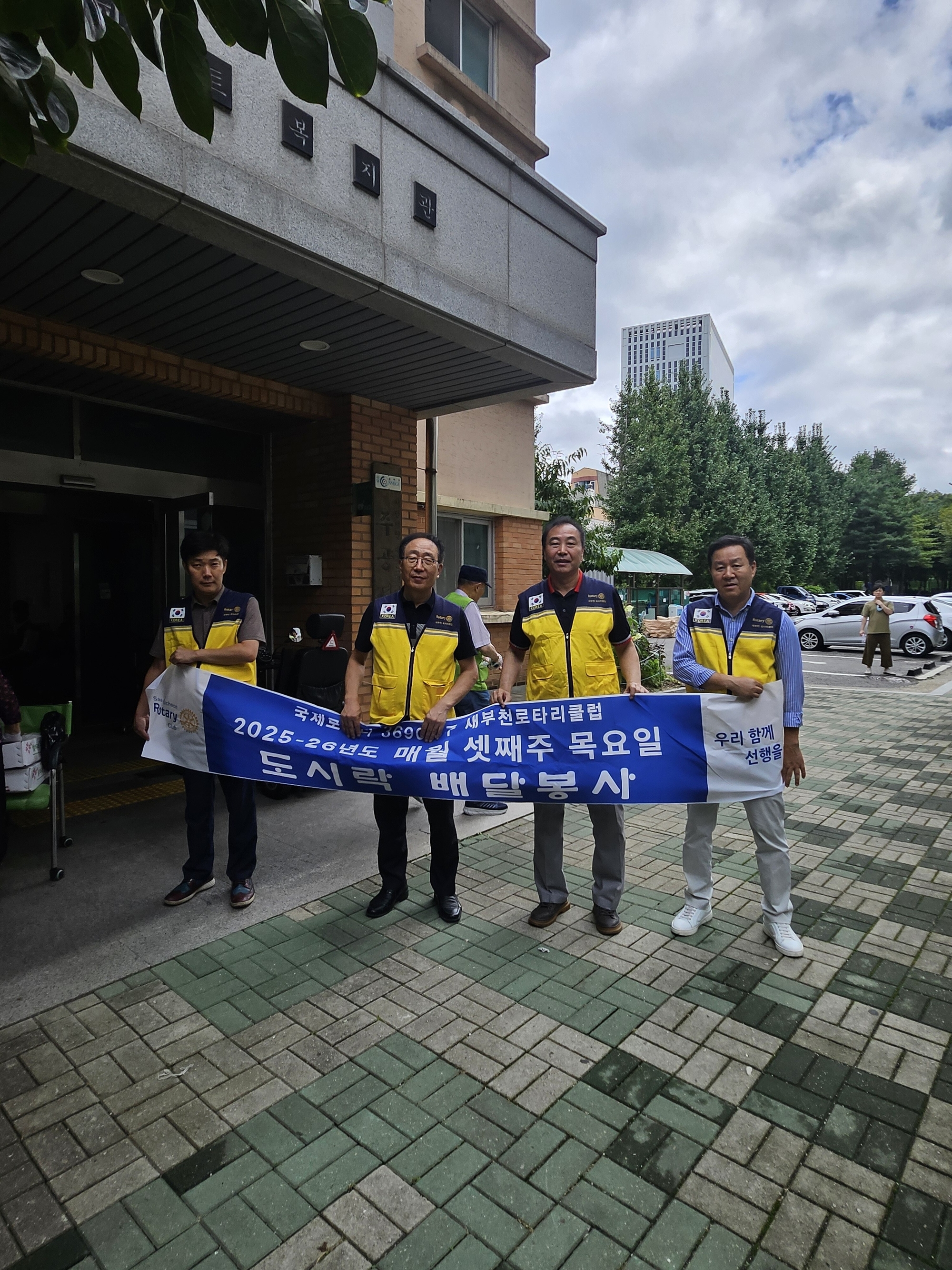 새부천RC 회장(삼봉 고광수)은 2025년 9월 18일(목) 춘의종합사회복지관에서 관리하는 거동이 불편한 저소득층 및 홀몸 어르신들의 가정에 제 3차 점심 도시락 배달 봉사를