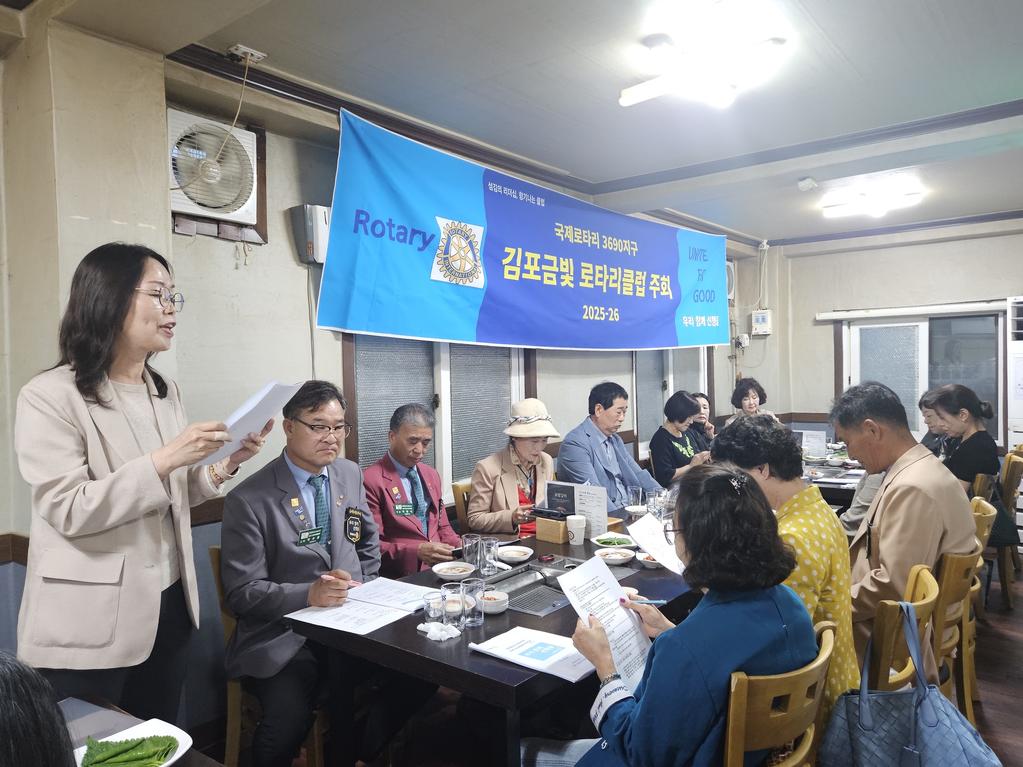 9월 24일, 김포금빛로타리클럽(회장 유인봉)은 정기모임을 풍무동 소재 보람갈비에서 개최했다.