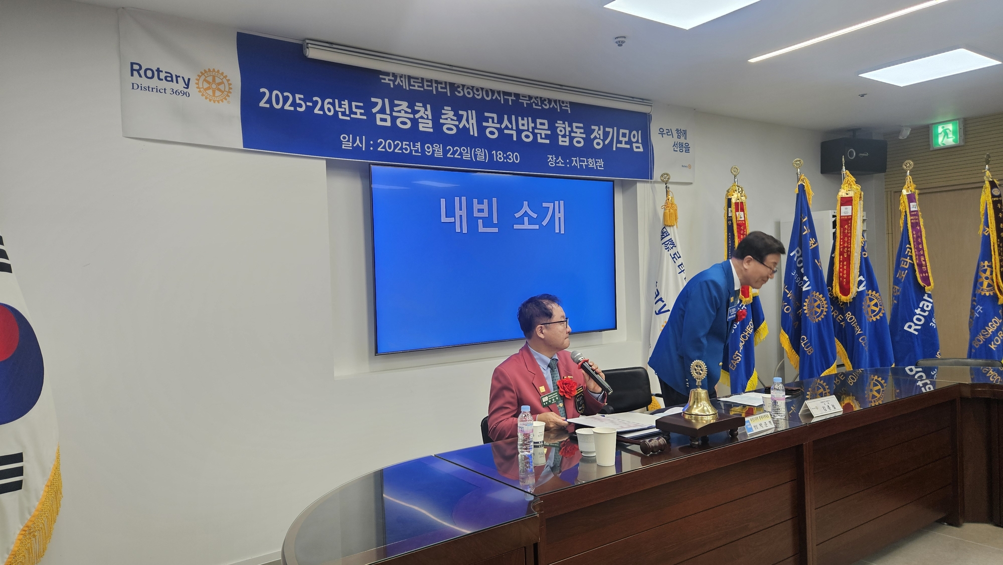 - 3690 지구 김종철 총재님과 박준혁 부천3지역총재지역대표, 이남용 총재특별보좌역, 변형일 수석의전위원님 참석하셨습니다.
