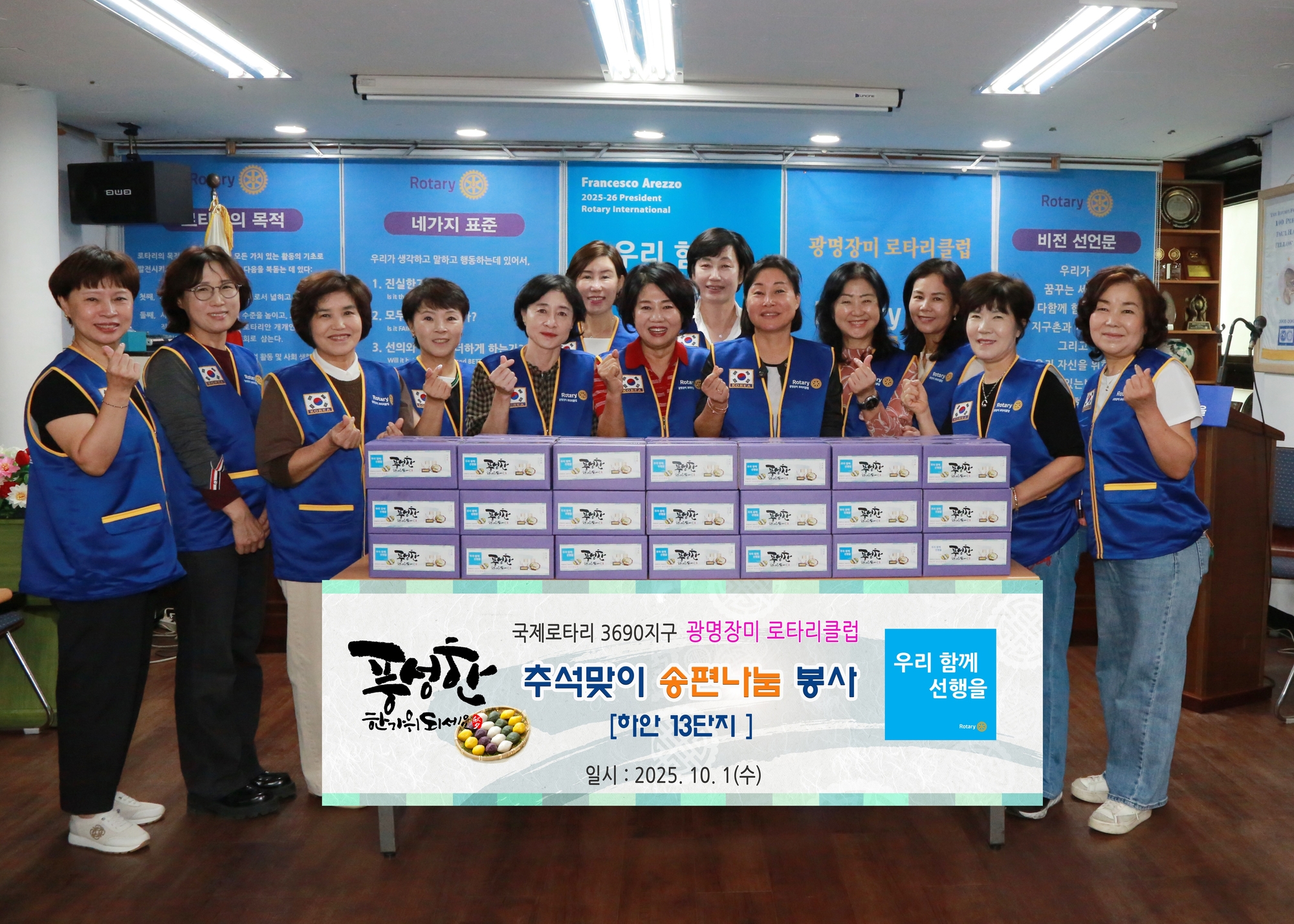 광명장미 로타리클럽(회장 소담 전혜숙)은 지난 10월 1일(수), 클럽사무실에서 추석을 맞아 지역사회 나눔 활동을 진행했다.