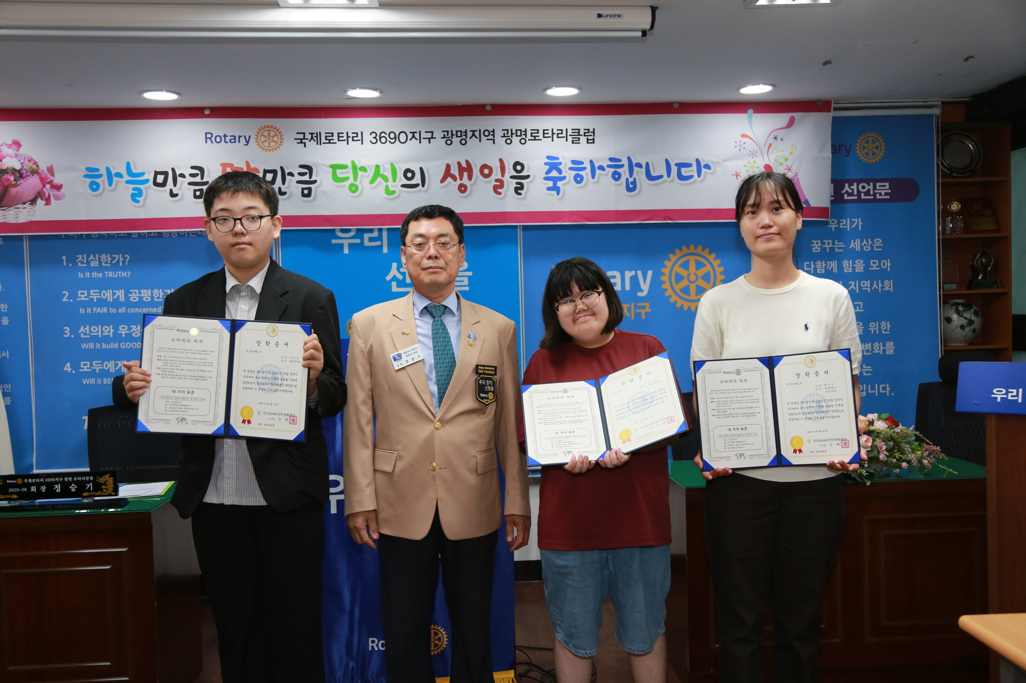 광명RC(회장 삼화 정승기)는 지난 8월 22일 클럽 사무실에서 한국로타리장학문화재단 2025학년도 2학기 장학금 전달식을 개최했다.