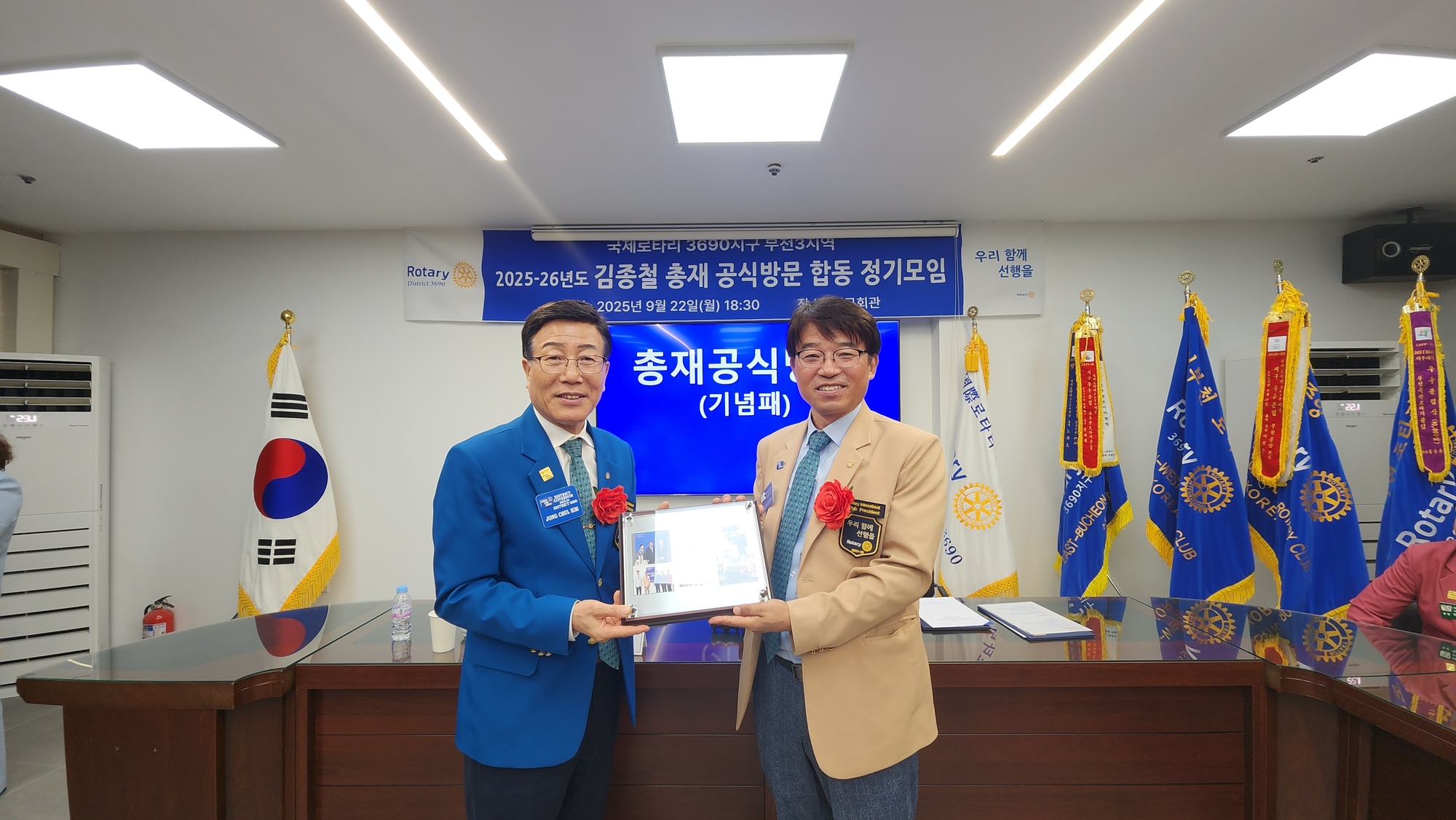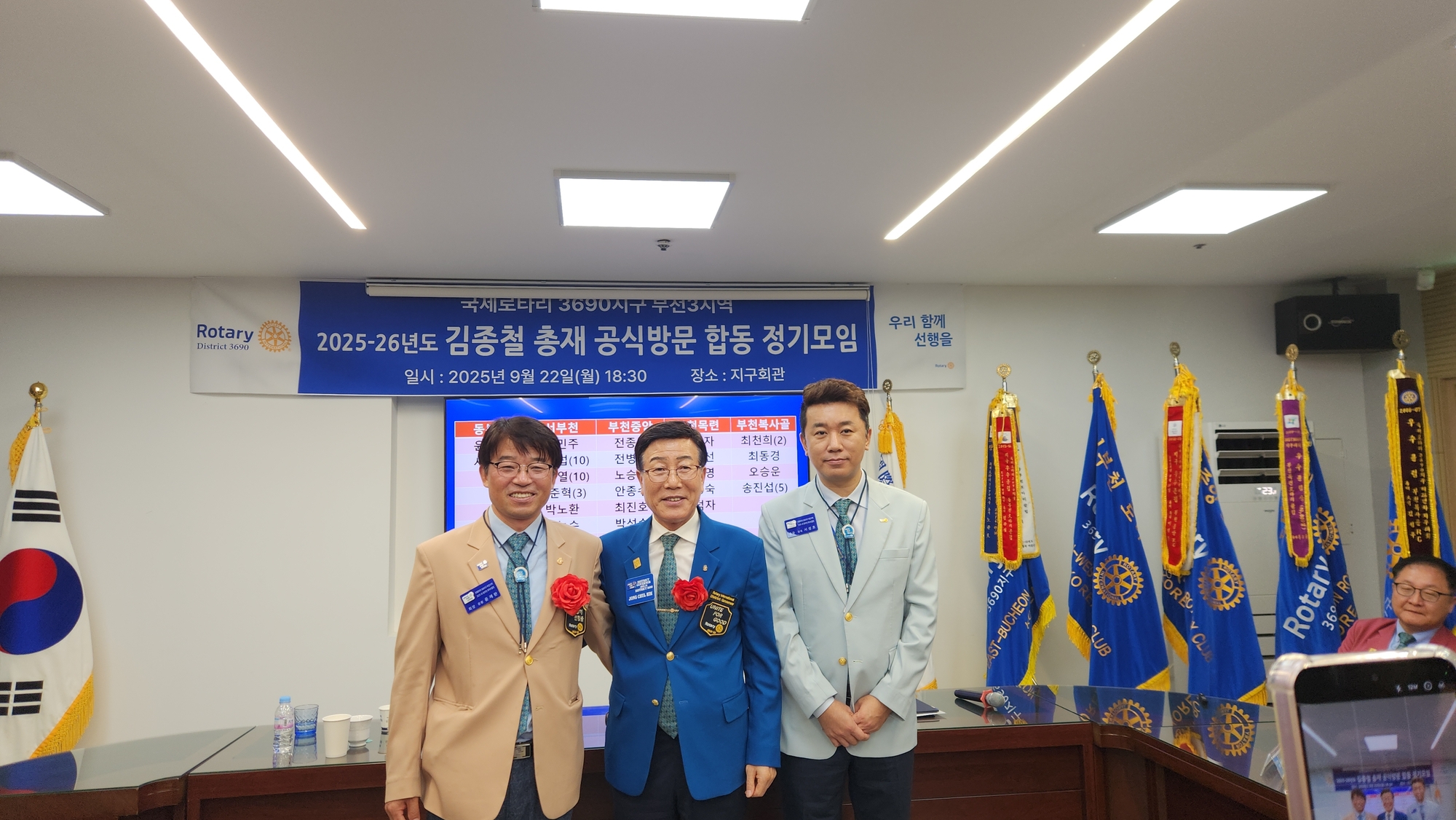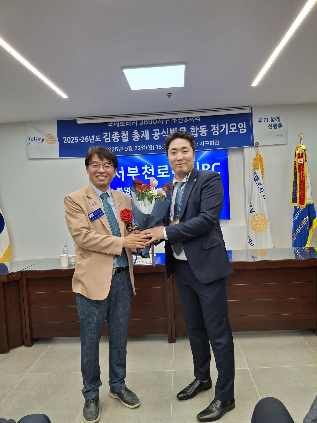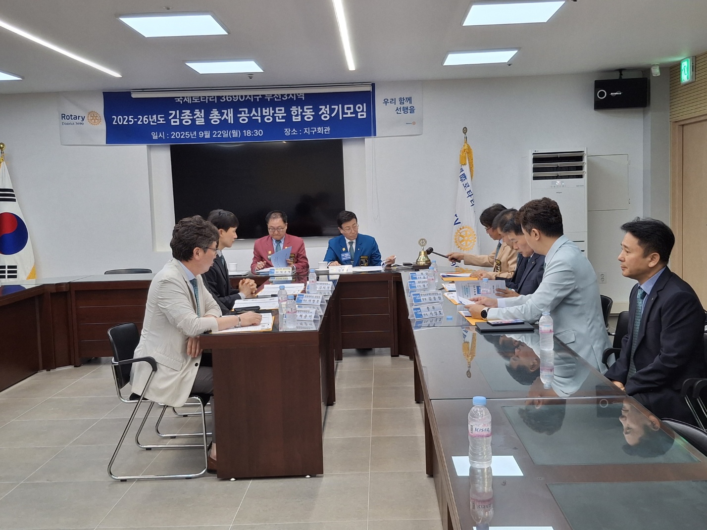 -내용: 동부천 로타리클럽(회장 윤재완)은 2025-26년도 부천3지역 합동 총재공식방문을 맞이하여 클럽협의회를 개최하고 합동 정기모임을 통해 연담 김종철 총재님과 뜻깊은 시간을 가졌습니다.