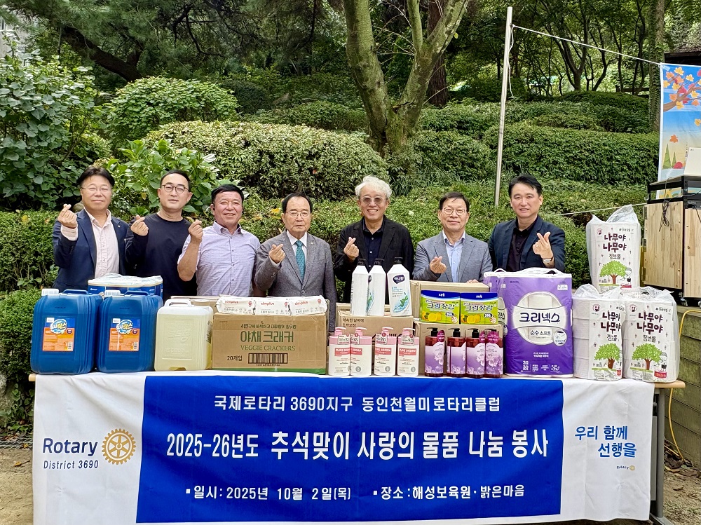 동인천월미 산인 이병철 회장은 추석맞이 사회봉사 사업으로 인천 미추홀구 해성보육원 영유아 양육시설과 연수구 밝은 마음 중증장애인 시설은 방문하여 사랑의 물품을 전달하고 왔습니다.