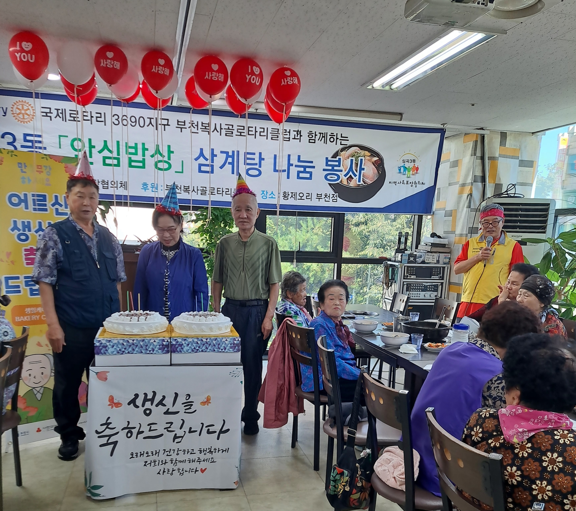 본클럽은 매월셋째주 수요일 (2025.10.15) 회장 최동경 사업장(황제오리)에서 한방삼계탕 55명분을 준비하여 독거노인및 취약계층 어르신께 심곡1동 25명은 복지부녀회 협조로 배달 봉사을 하였고