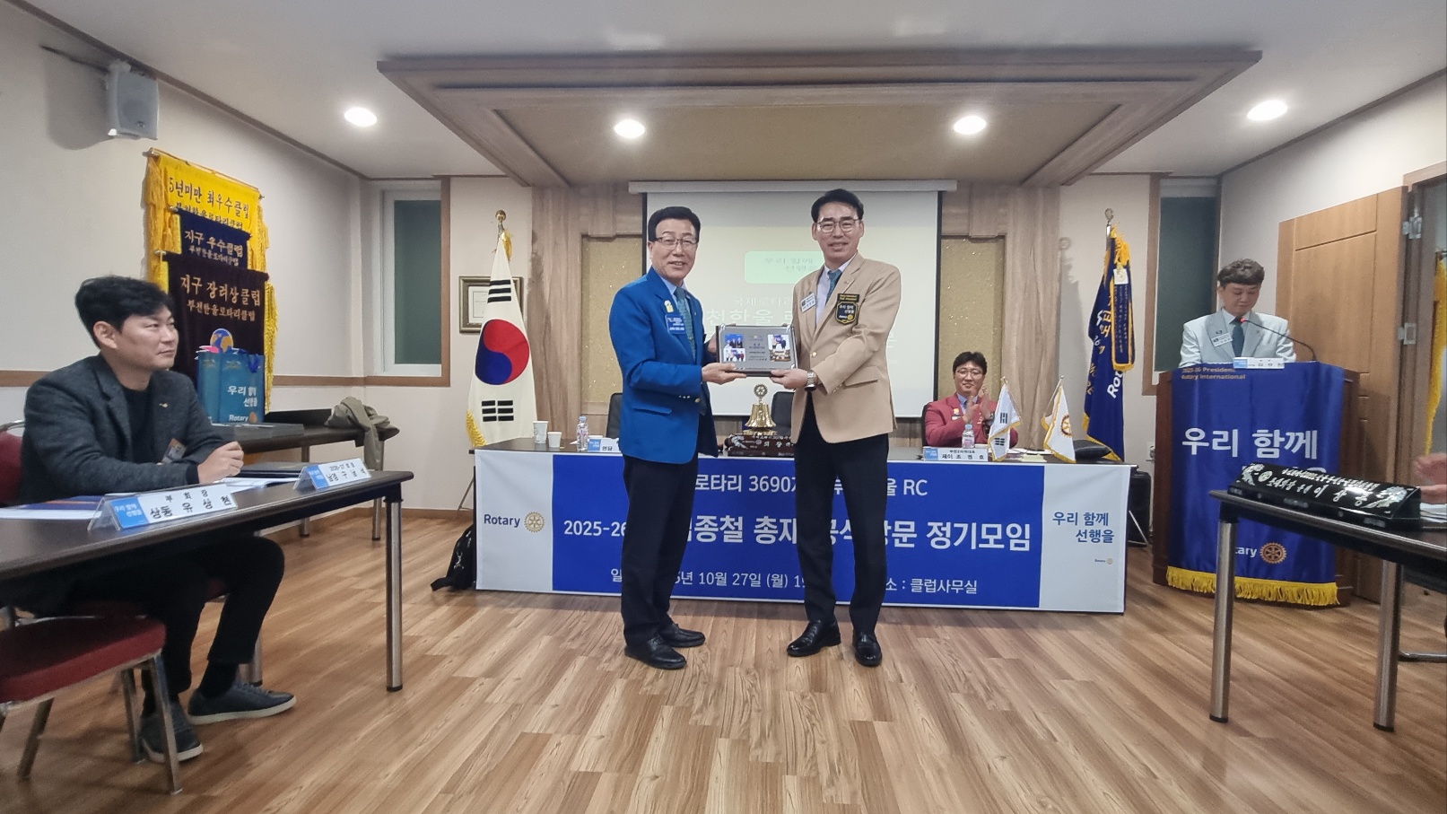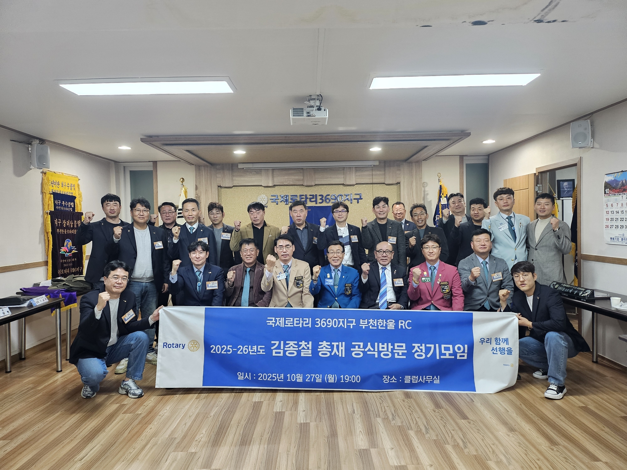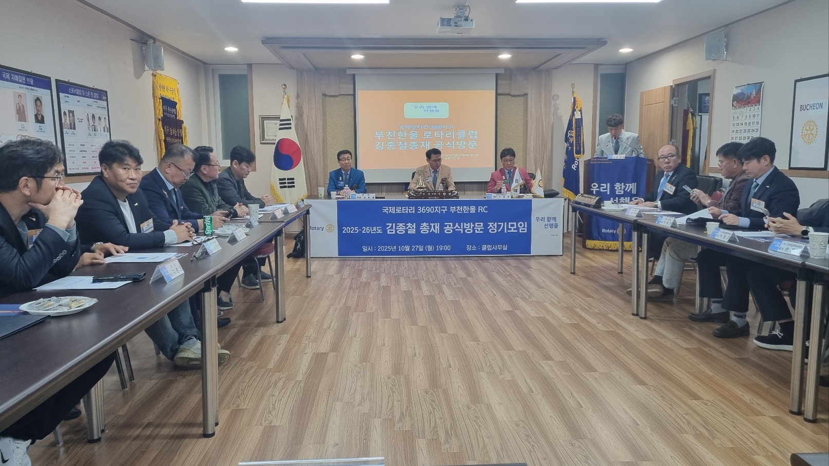 부천한울 로타리클럽(회장 백송 이천종)은 2025년 10월 27일(월) 오후 5시, 클럽사무실에서 연담 김종철 총재님과 제이 조정호 부천2지역 대표님을 모시고
