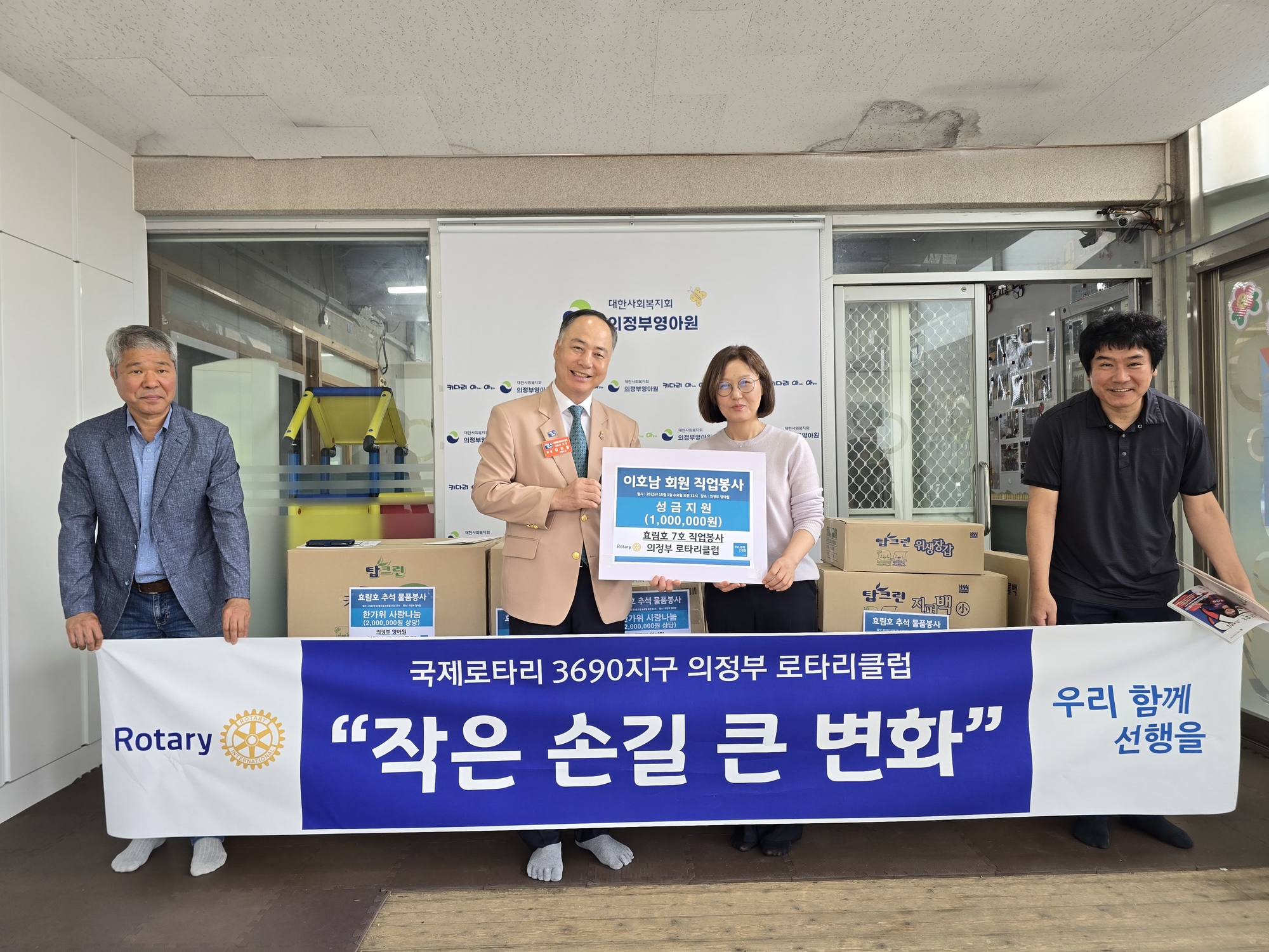 ※ 내용 : 영아원의 운영상 필요한 자원 마련에 유용하게 사용하시라고 화영 이호남 회원께서 현금 100만원을 따로 지원해