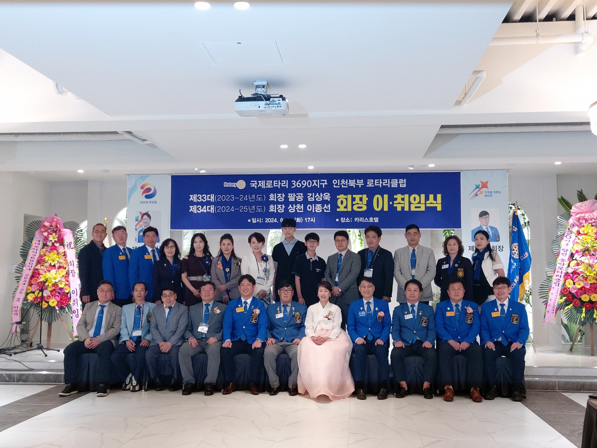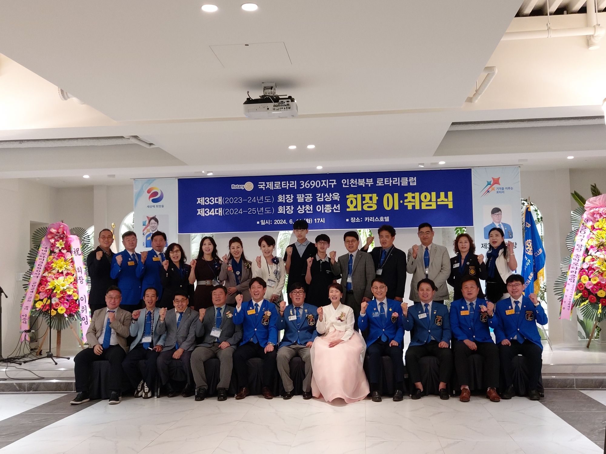 -내용: 인천북부 로타리클럽(회장 상천 이종선) 33대-34대 회장 이취임식을 맞이하여 진일 이준석 총재님을 모시고 회원, 가족 , 인근 로타리클럽 로타리안 및 내빈들을 모시고 '함께 하는 로타리'로 나아가기 위한 다짐을 하며 행사를 진행하였다