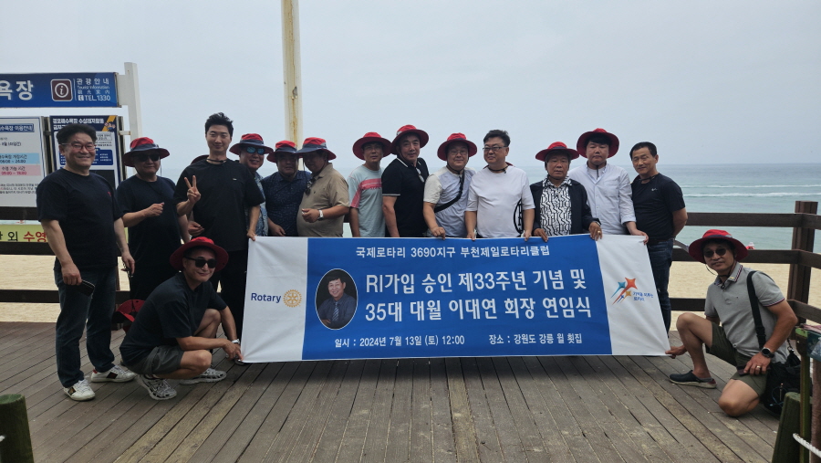 부천제일 로타리클럽 (회장 대월 이대연)은 2024년 7월 13일~14일(토~일) 강원도 주문진 및 속초로 회장 연임식 및 단합대회로 개최하였습니다.